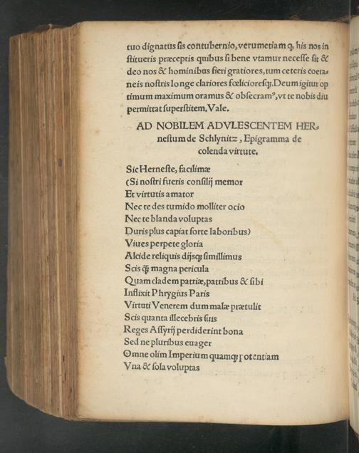 AD NOBIIEM ADVILESCENTEM HER neſtum de Schlynit=, Epigramma de colenda virtute.