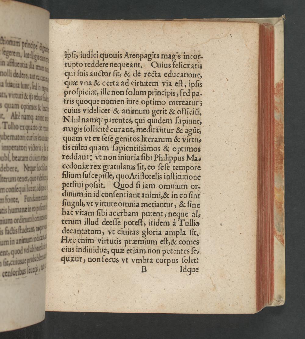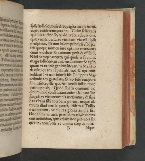 ipſi, iudici quouis Areopagita magis incor- rupto reddere nequeant. Cuius felicitatis qui ſuis auctor ſit,& de recta educatione, quæ vna& certa ad Lirtutem via eſt, ipſis proſpiciat, ille non ſolum principis, ſed pa- tris quoque nomen iure optimo mereatur; cuius videlicet& animum gerit& ofſiciũ. Nihil namq; parentes, qui Juddem ſapiunt, magis ſollicitè cur ant, medit antur& agũt, quam vt ex ſeſe genitos literarum& virtu-/ tis cultu quam ſapientiſsimos& optimos reddant: vt non iniuria ſibi Philippus Ma- cedoniæ rex gratulatus ſit, eo ſeſe tempore filium ſuſcepiſſe, quoAriſtotelis inſtitutione perfrui poſsit. Quod ſi iam omnium or. dinum in id conſentiant animi,& in eo ſint ſinguli vt virtute omnia metiantur,& ſine hac vitam ſibi acerbam putent, neque al- rerum illud deeſſe poteſt, itidem à Tullio
