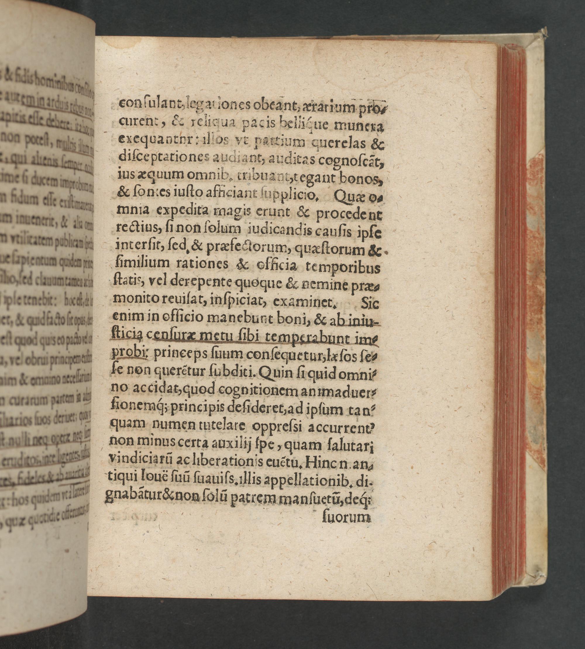 con ſulant legatlones obeant, æxarium pro⸗ curent,& relicua pacis belliue munera exequanthr: illos yt patsium qucrelas diſceptationes audiant, auditas cognoſcät, ius xquum omnib. eribuant,tega ut bonos, & ſomes iuſto afficiant ſupplicio. Quæx o⸗ mnia expedita magis erunt& procedent rectius, ſi non ſolum iudicandis cauſis ipſe interſit, ſed,& præfectorum, quæſtorum& ſimilium rationes& officia temporibus ſtatis vel derepente quoque& nemine præ⸗ monito reuilat, inſpiciat, examinet. Sic enim in oflici Pprobi prineep nconſequetun læſos ſe⸗ ſe non querẽtur ſubditi. Quin ſi quid omni⸗ no accidat, quod cognitionem an maduer⸗ fionemq́; princiĩpis deſideret, ad ipſum tan⸗ quam numen tutelate oppreſsi accurrent non minus certa auxilij ſpe, quam ſalutari vindiciarũ ac lberationis euẽtu. Hinc n an, tiqui louẽ ſuũ ſuauiſ 8. Mllis appellationib. di- gnabãtur non ſolũ patrem manſuetũ deq ſuorum