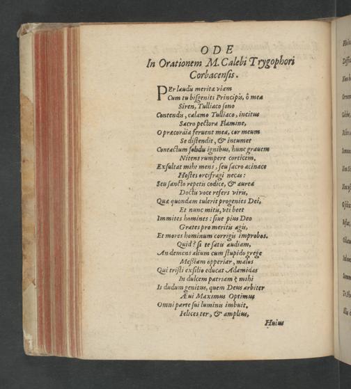 Er laudis meritæ viam cum tu biſgeniti Principis, ò me⸗ Siren, Tulliaco ſono Contendis, calamo Tulliaco, incitus Sacro pectora Hamine, O præcoraia feruent mea, cor meum Se diſtendit,& intumet