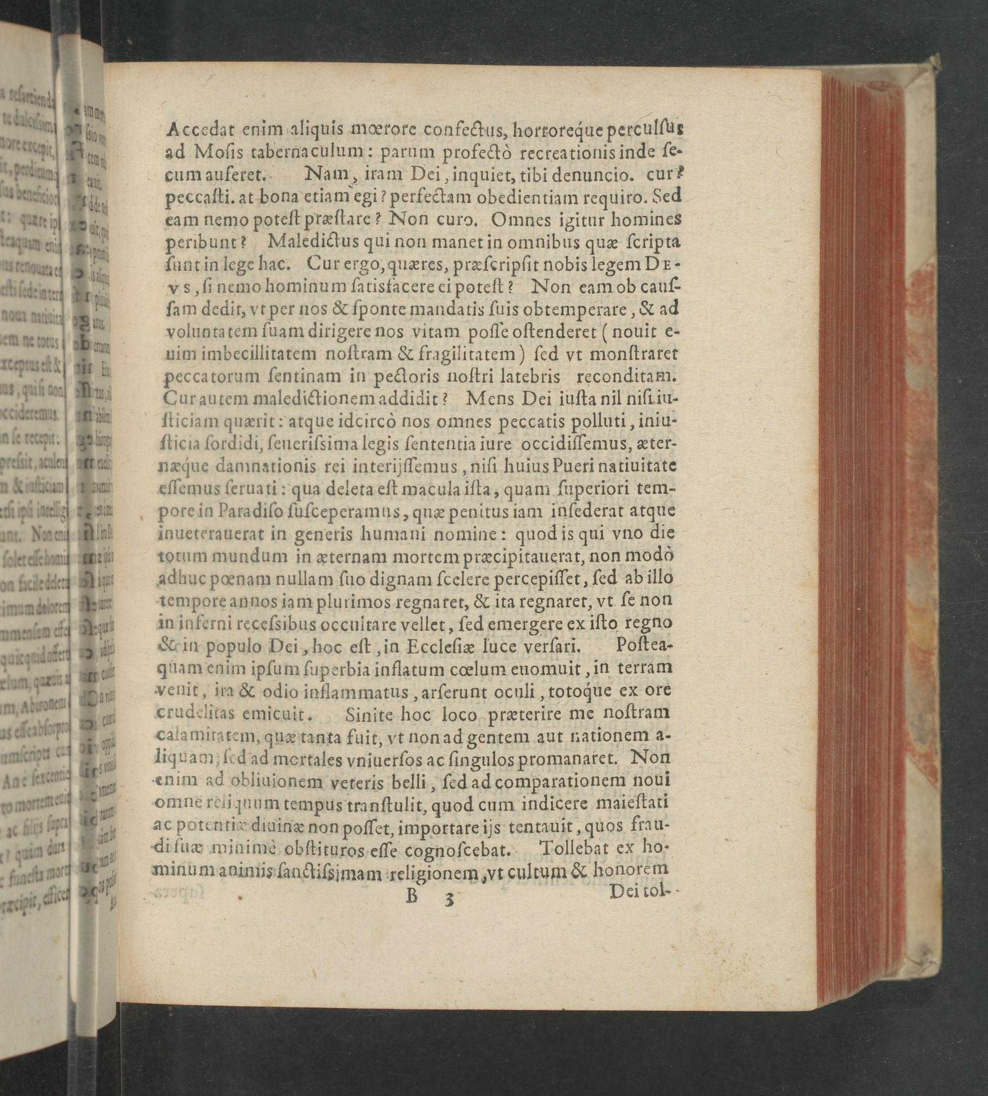 Accedat enim aliquis mœrore confectus, hortoreque perculſus ad Moſis tabernaculum: parum profectò recreationis inde ſe- cum auferet. Nam, iram Dei, inquiet, tibi denuncio. cur: peccaſti. at bona etiam egi? perfectam obedientiam requiro. Sed eam nemo poteſt præſtare? Non curo. Omnes igitur homines peribunt? Maledictus qui non manet in omnibus quæ ſcripta ſunt in lege hac. Cur ergo, quæres, præſeripſit nobis legem De- vs, ſinemo hominum ſatisfacere ei poteſt? Non eam ob cauſ- ſam dedit, vt per nos& ſponte mandatis ſuis obtemperare,& ad voluntatem ſuam dirigere nos vitam poſſe oſtenderet(nouit e- uim imbecillitatem noſtram& fragilitatem) ſed vt monſtraret peccatorum ſentinam in pedoris noſtri latebris reconditam. Cur autem maledictionem addidit? Mens Dei iuſta nil niſt iu- ſticiam quærit: atque idcircò nos omnes peccatis polluti, iniu- ſticia ſordidi, ſeneriſsima legis ſententia iure occidiſſemus, æter- næque dammationis rei interijſſfemus, niſi huius Pueri natiuitate eſſemus ſeruati: qua deleta eſt macula iſta, quam ſuperiori tem- pore in Paradiſo ſuſceperamus, quæ penitus iam inſederat atque inueterauerat in generis humani nomine: quod is qui vno die totum mundum in æternam mortem præcipitauerat, non modò adhuc pœnam nullam ſuo dignam ſcelere percepiſſet, ſed ab illo tempore annos iam plurimos regnatet,& ita regnaret, vt ſe non in inferni receſsibus occultare vellet, ſed emergere ex iſto regno Krin populo Dei, hoc eſt, in Eccleſiæ luce verſari. Poſtea- quam enim ipſum ſuperbia inflatum cœlum euomuit, in terram Venit, ira& odio inflammatus, arſerunt oculi, totoque ex ore crudelitas emicuit. Sinite hoc loco præterire me noſtram calamitatem, quæ tanta fuit, vt non ad gentem aut nationem a- liquam ſed ad mortales vniuerſos ac ſingulos promanaret. Non enim ad obliuionem veteris belli, ſed ad comparationem noui omne reliquum tempus tranſtulit, quod cum indicere maieſtati ac pote ntiæ diuinæ non poſſet, importare ijs tentauit, quos frau- di fuæ minimè obſtituros eſſe cognoſcebat. Tollebat ex ho⸗