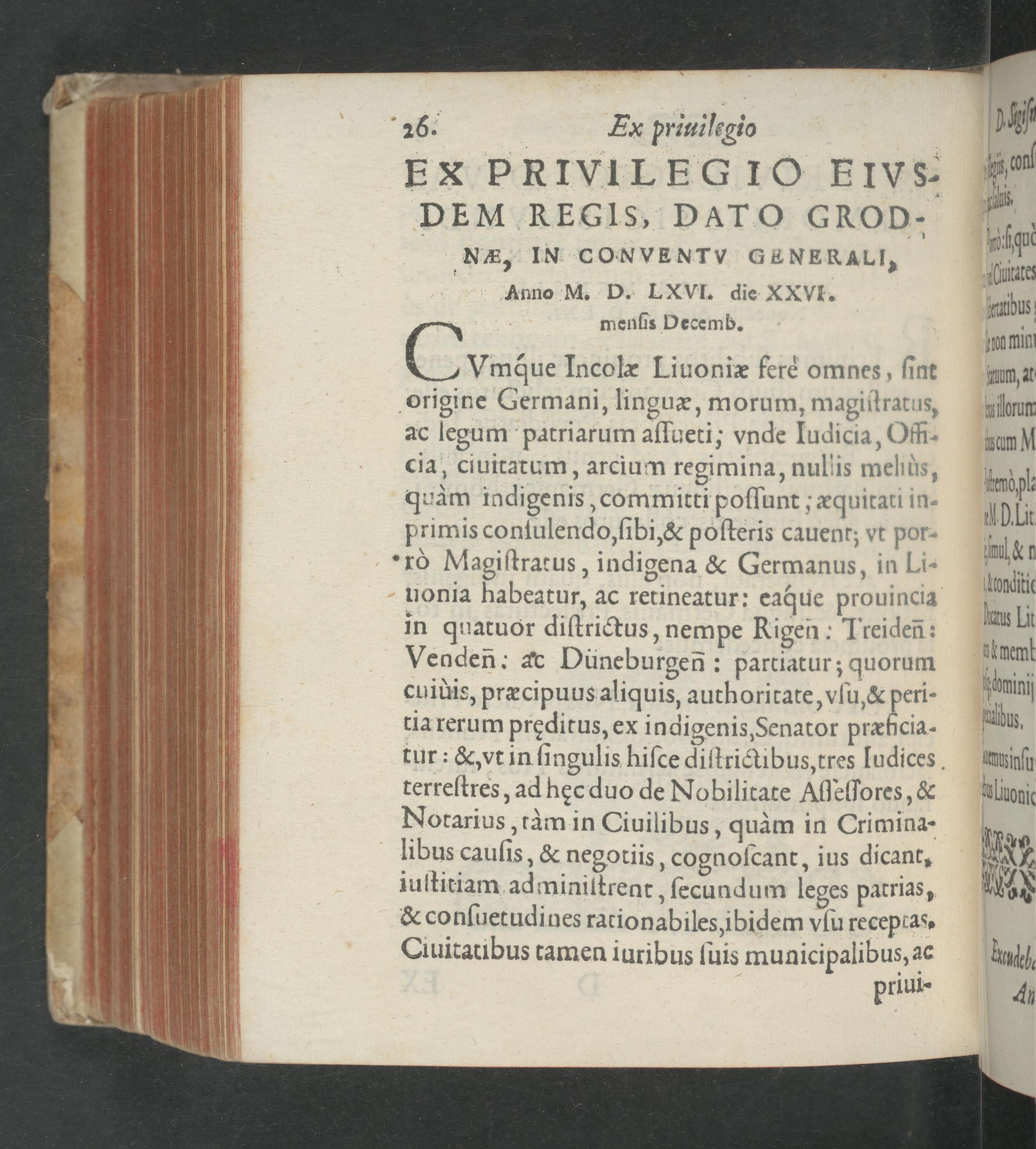 DEM KEGIS, DATO GROD-. NEÆ, IN CONVENTV GENERALI, Amno M. D. LXVI. die XXVI.