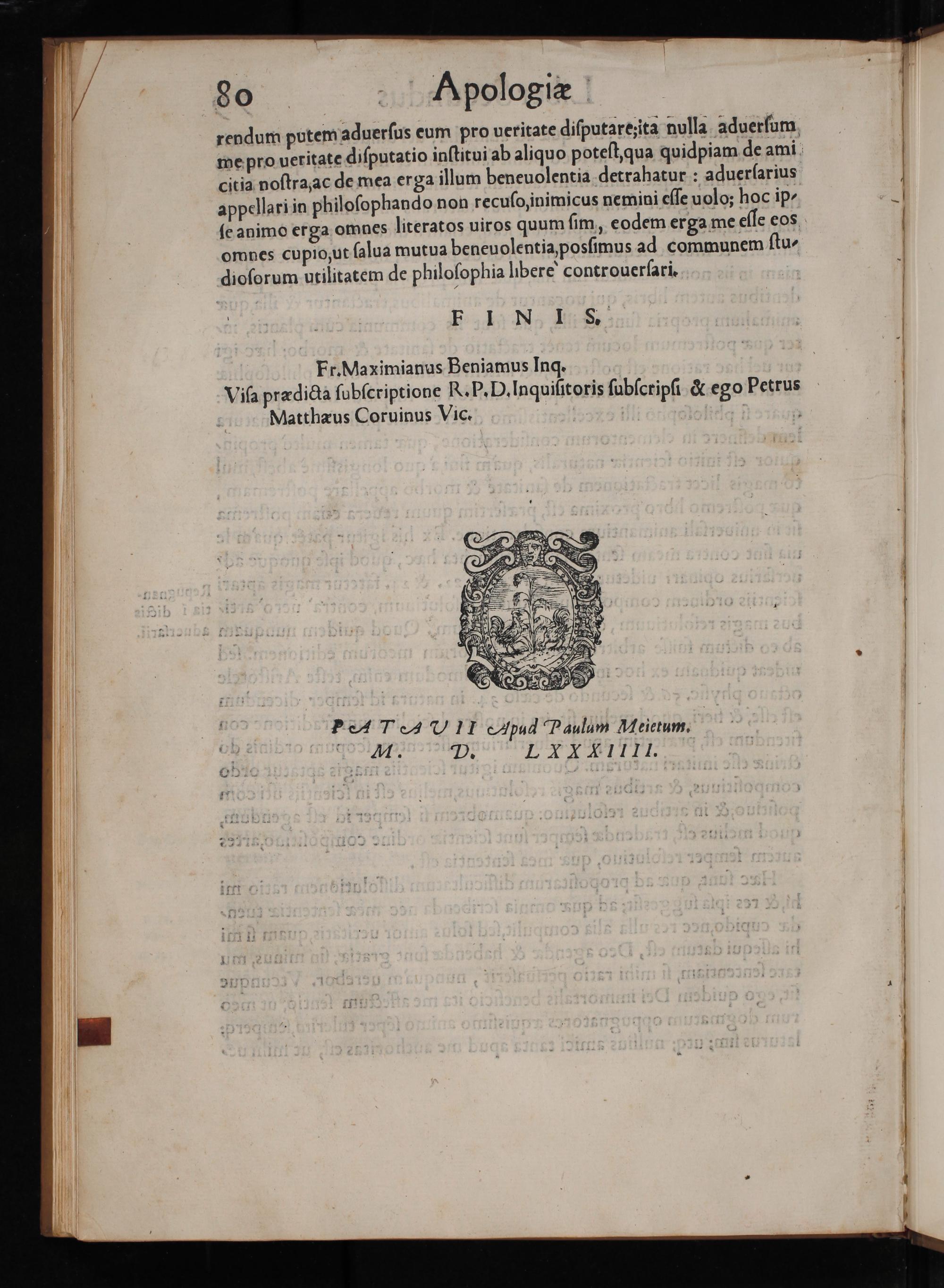 Fr. Maximianus Beniamus Inq. Viſa prædicta ſubſcriptione R. P. D. Inquiſitoris ſubſcripſi& ego Petrus Matthæus Coruinus Vic.
