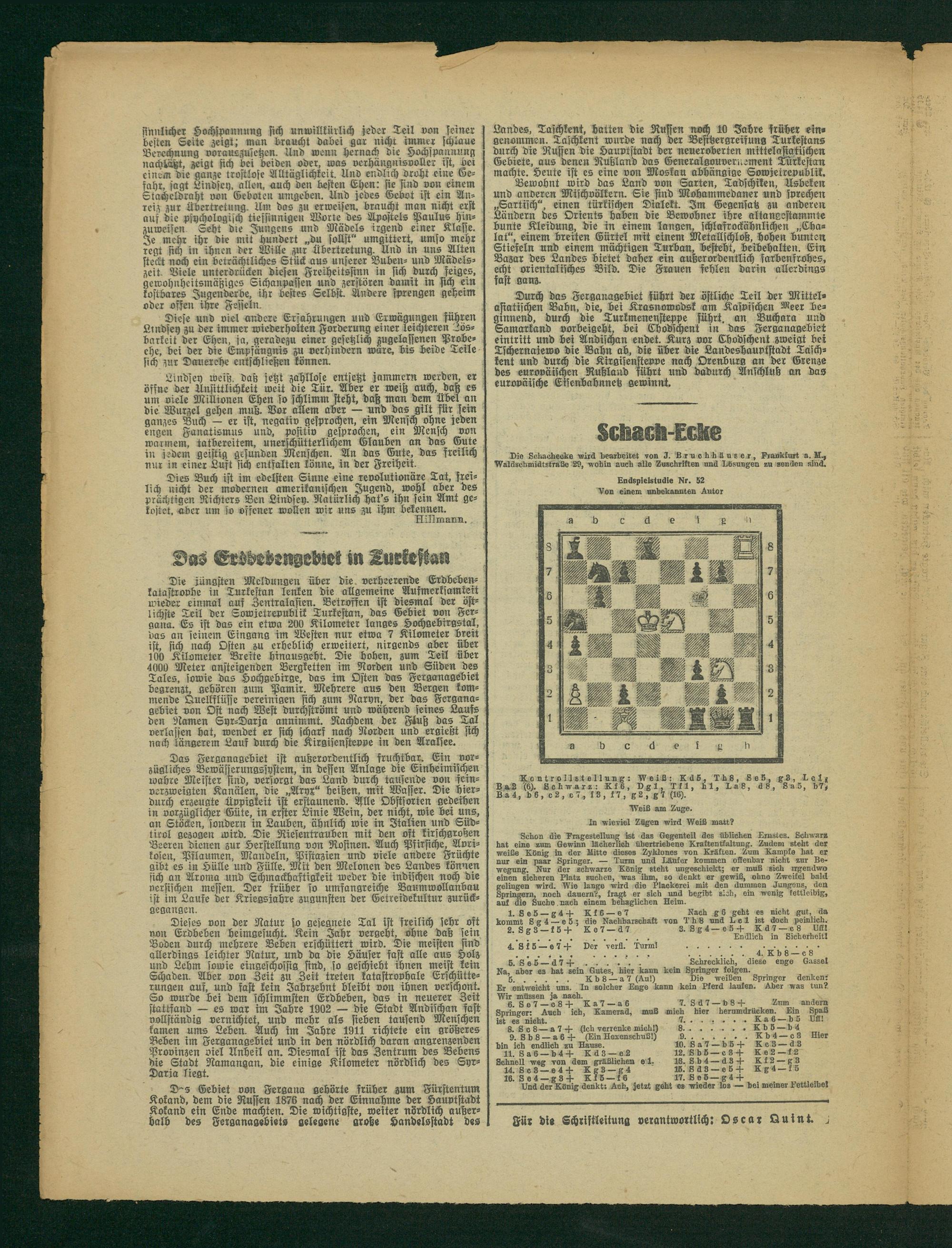 Für die Schriftleitung verantwortlich: Oscar Quint.