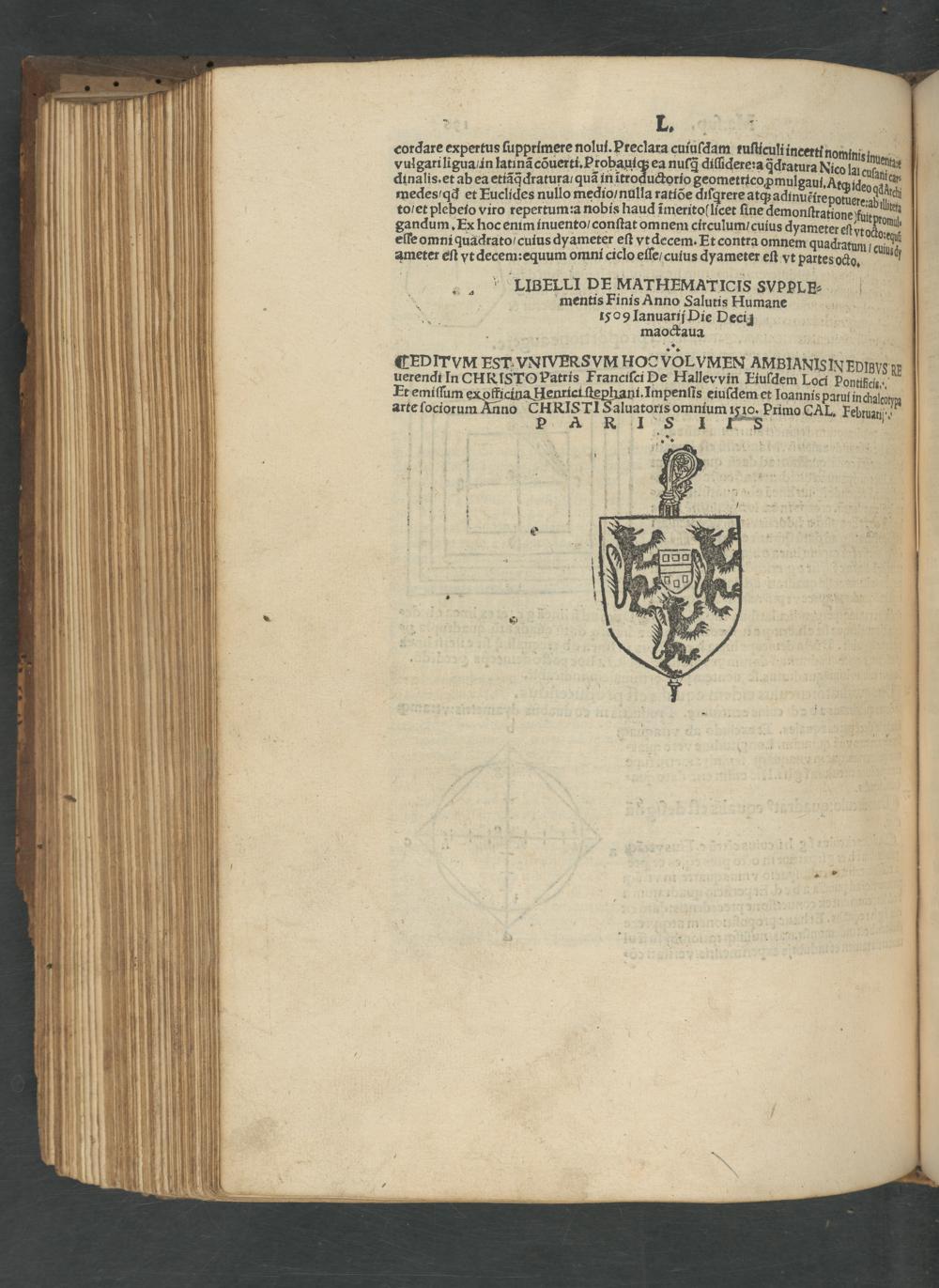 0. „ LIBFLLI DEMATHEMATICIS SVPpLB⸗ mentis Finis Anno Salutis Humane 109 Januarij Die Decig maoctaua 5
