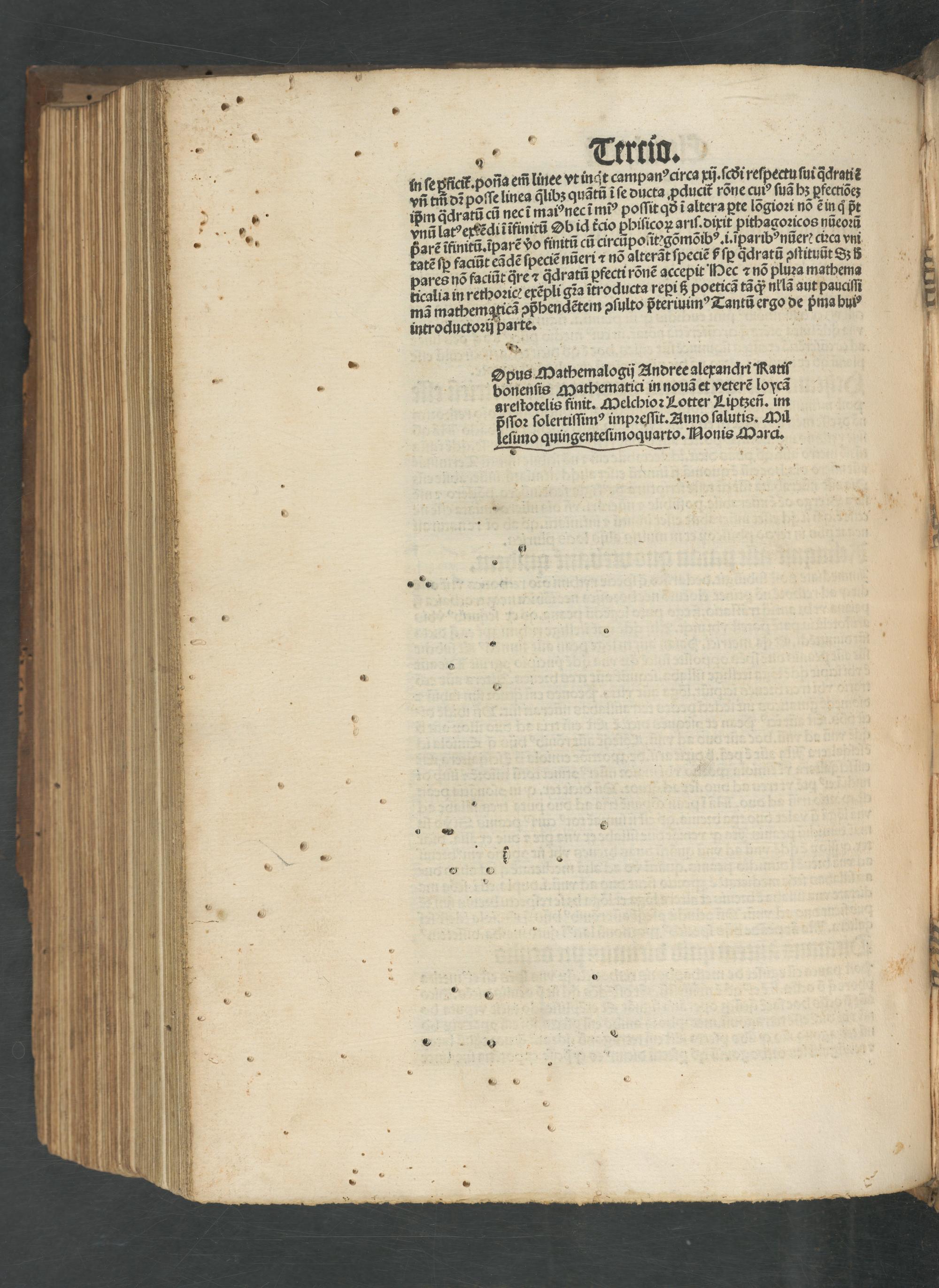 areſtotelis finit. Melchioꝛ Kotter Liptzeñ. im pſſoꝛ ſolertiſſimꝰ impꝛeſſit. Anno ſalutis. Mil