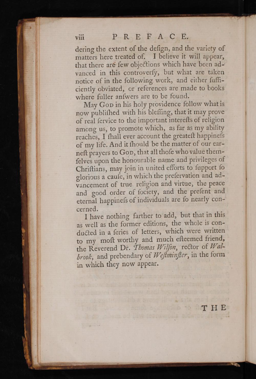 May Gop in his holy providence follow what is now publiſhed with his bleſſing, that it may prove of real ſervice to the important intereſts of religion among us, to promote which, as far as my ability reaches, I ſhall ever account the greateſt happineſs of my life. And it ſhould be the matter of our ear- neſt prayers to Gop, that all thoſe who value them- ſelves upon the honourable name and privileges of Chriſtians, may join in united efforts to ſupport ſo glorious a caufe, in which the preſervation and ad- vancement of true religion and virtue, the peace and good order of ſociety, and the preſent and eternal happineſs of individuals are ſo nearly con- cerned.