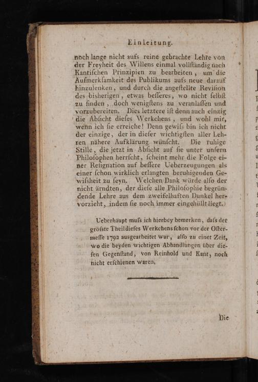 Ueberbaupt mußs ich hierbey bemerken, dafs der gröſste Theildieſes Werkehens ſchon vor der Oſter- meſſe 1702 ausgearbeitet war, alſo 2u einet Zeit, wo die beyden wichtigen Abhandlungen über die⸗ ſen Gegenſtand, von Reinhold und Kant, noch nicht erſchienen waren.