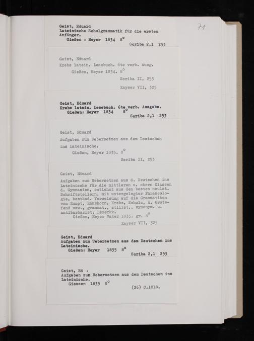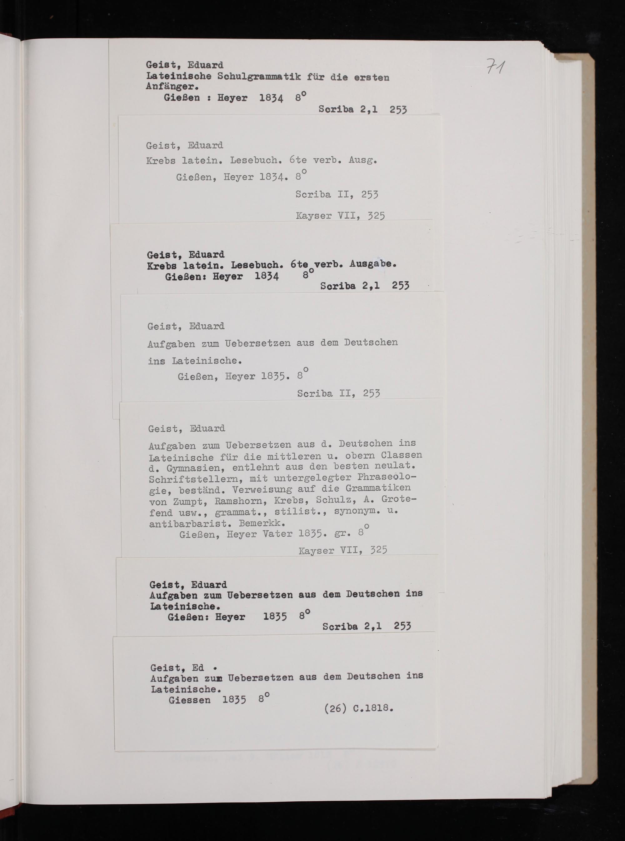 Geist, Ed. Aufgaben zun Uebersetzen aus dem Deutschen ins Lateinische. Giessen 1835 8⁰ (26) GC. 1818.