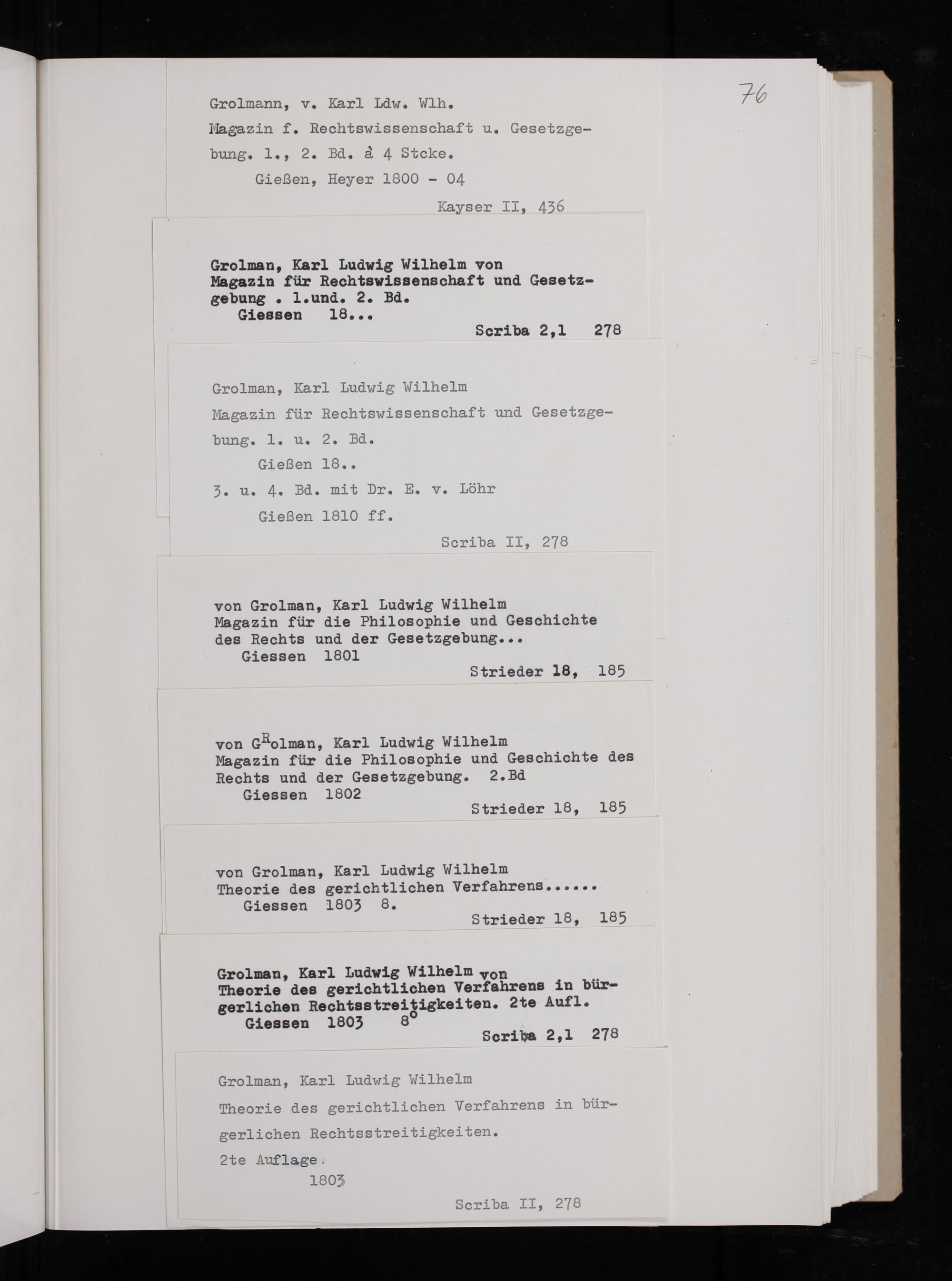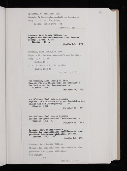 Grolman, Karl Ludwig Wilhelm von Tmheorie des gerichtlichen Verfahrens in bür- gerli chen Rechtsstreitigkeiten. 2 te Auf1. Giessen 1803 8 Scriba 2,1 278