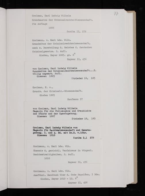 von Grolman, Karl Ludwig Wilhelm Grundsätze der Kkriminalrechtswissenschaft. 2. völlig umgearb. Auf¼. Giessen 1805 Strieder 18, 185