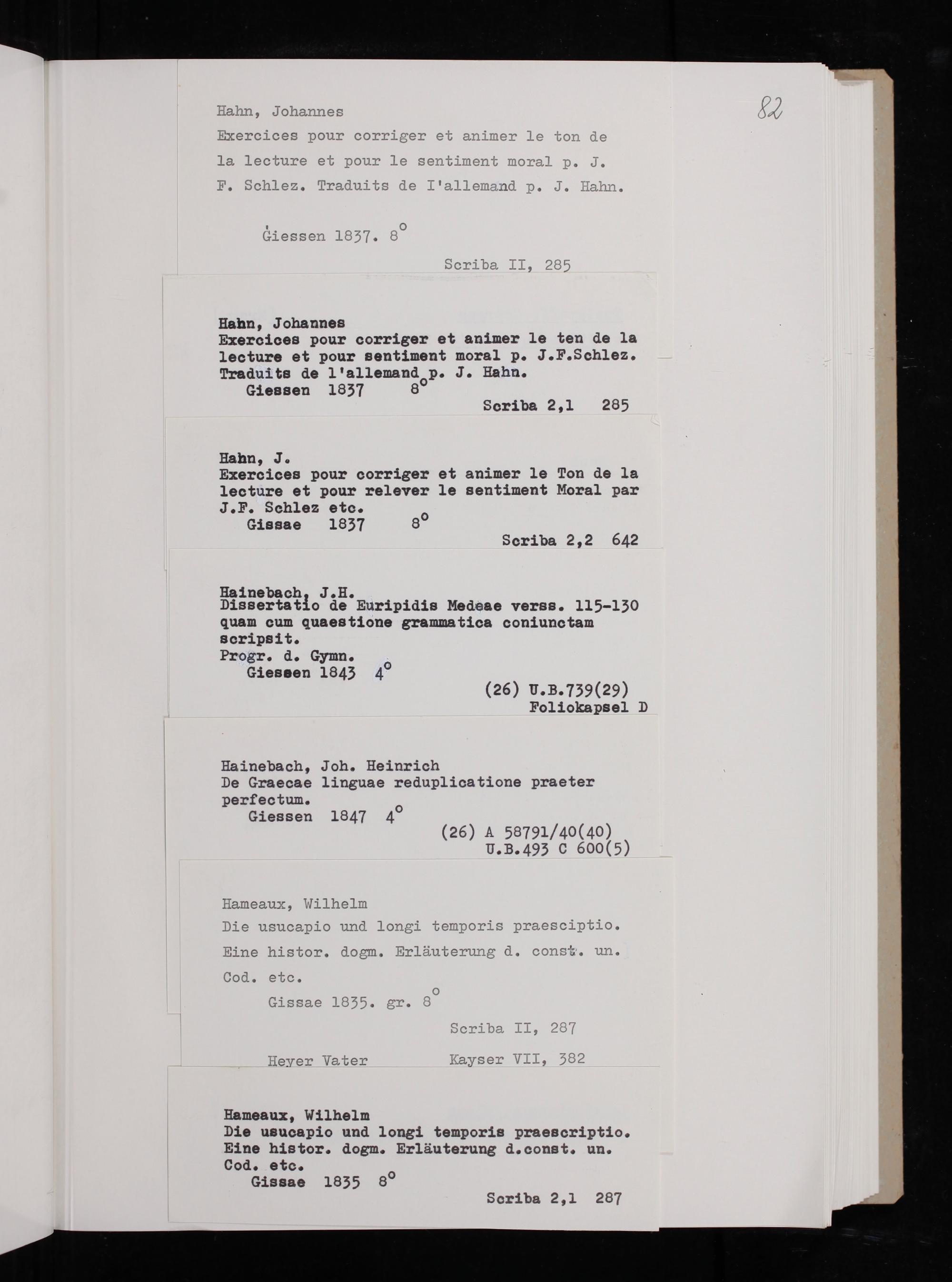 Hahnn, Johannes Exercdces pour corriger et animer 1e ten de 1a lecture et pour sentiment moral p. J. F. Schlez. Tradui ts de 1 allemand p. J. Hahn. Giessen 1837 8⁰ Scriba 2, 1 285