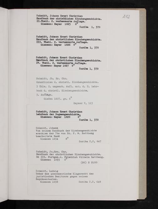 Schmidt, Johann Ernst Christian Handbuch der christlichen Kirchengeschichte. III. Theil. 2., verbesserte Auflage. Giessen: Heyer 1826 80 Seriba 1, 370