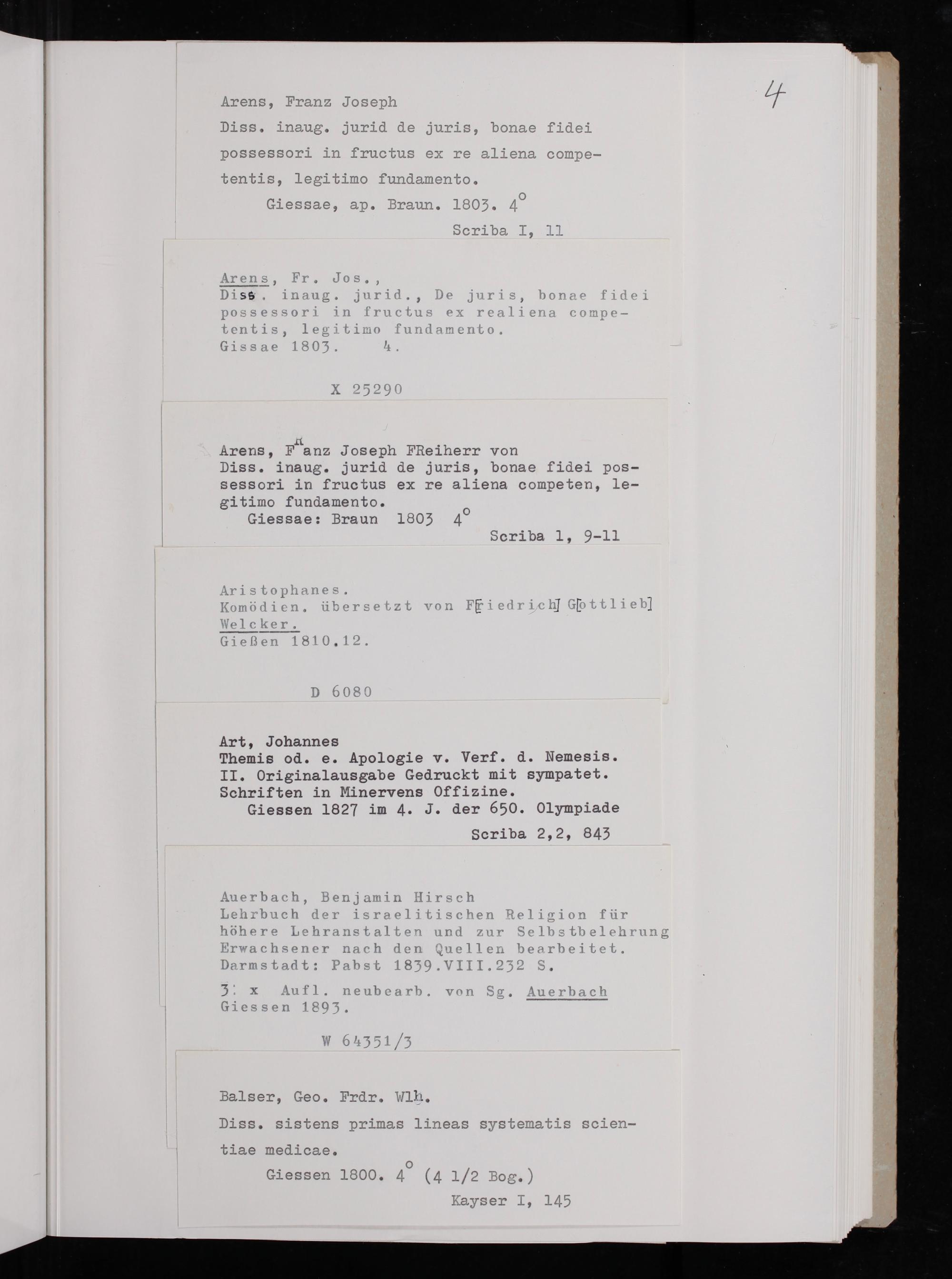 Arens, Flanz Joseph Fhñeiherr von Diss. inaug. Jjurid de Juris, bonae fidei pos- sessori in fructus ex re aliena competen, 10e- gi timo fundamento. Giessae: Braun 1803 49 Scriba 1, 9-—11