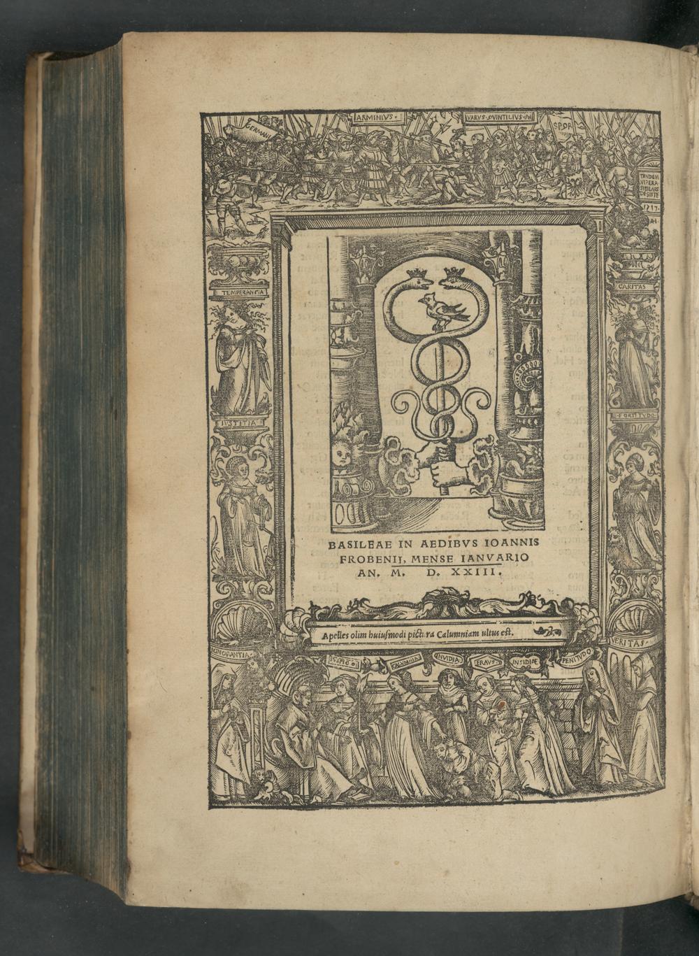 Io. Frobenivs Politioris literaturæ cultoribus, s. : Adnisi sumus æditione proxima, ut hoc opus cum primis frugiferu[m], quàm emendatissimu[m] prodiret in lucem, nec arbiror quenq[ue] inficiaturu[m], id nos infeliciter fuisse conatos : nunc quicquid in arte mea possunt promittere curæ, it totu[m] expromtu[m] est : Accessit & autoris opera, qui multa uel auxit, uel reddidit meliora : Atq[que] utina[m] hoc diu illi liceat, in studiorum lucrum potius quàm meu[m]: Sed uercor ne ha[n]c recognitio nem ab illo simus habituri postrema[m] : qui literario gaude[n]t lucro, habent hic lucru[m] no[n] aspernandu[m] : quibus res est angustior domi, quam ut identide[m] idem opus mercent, habet postrema[m], ni fallor, autoris recogni tione[m], simul & locupletatione[m] : Bene ualete, & nostræ industriæ, si promereor, fauete / [Erasmvs Roterodamvs]