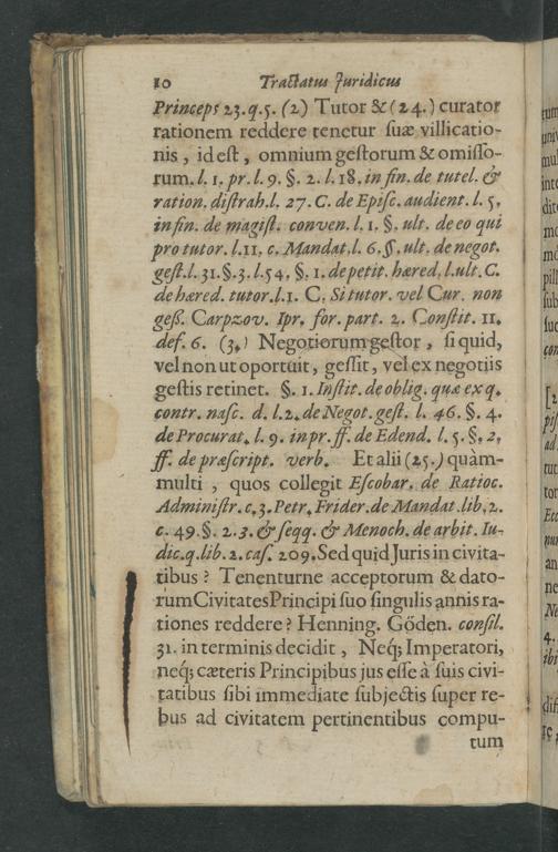 10 NaMatus Furidicus Princepʒ 23. 4.j. ¶20 Tutor&(24.) curatot n rationem reddere tenetur ſuæ villicatio- nis, ideſt, omnium geſtorum& omiſſo- 3 rum. f.1. pr. 1. 9. F. 2. 1. 18, in ſn. de tutel. e ſt rariun, Atrah. I 27. C. de Bpꝛſt. audient... t inſn. de magiſt. conwen. 1. 1.§. ult. de eb qu