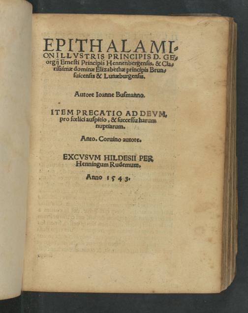 Epithalamion Illvstris Principis D. Georgij Principis Hennenbergensis, & Clarissimæ dominæ Elizabethæ principis Brunsuicensi & Lunæburgensis