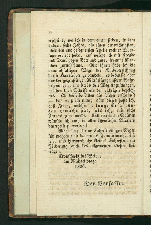 Die falsche und wahre Erziehung der Kinder durch Hauslehrer : für Unterrichtende und Eltern, aus mehrjährigen Erfahrungen / dargestellt von Heinrich August Hecht, Pfarrer zu Veitsberg, im Großherzogthum Sachsen