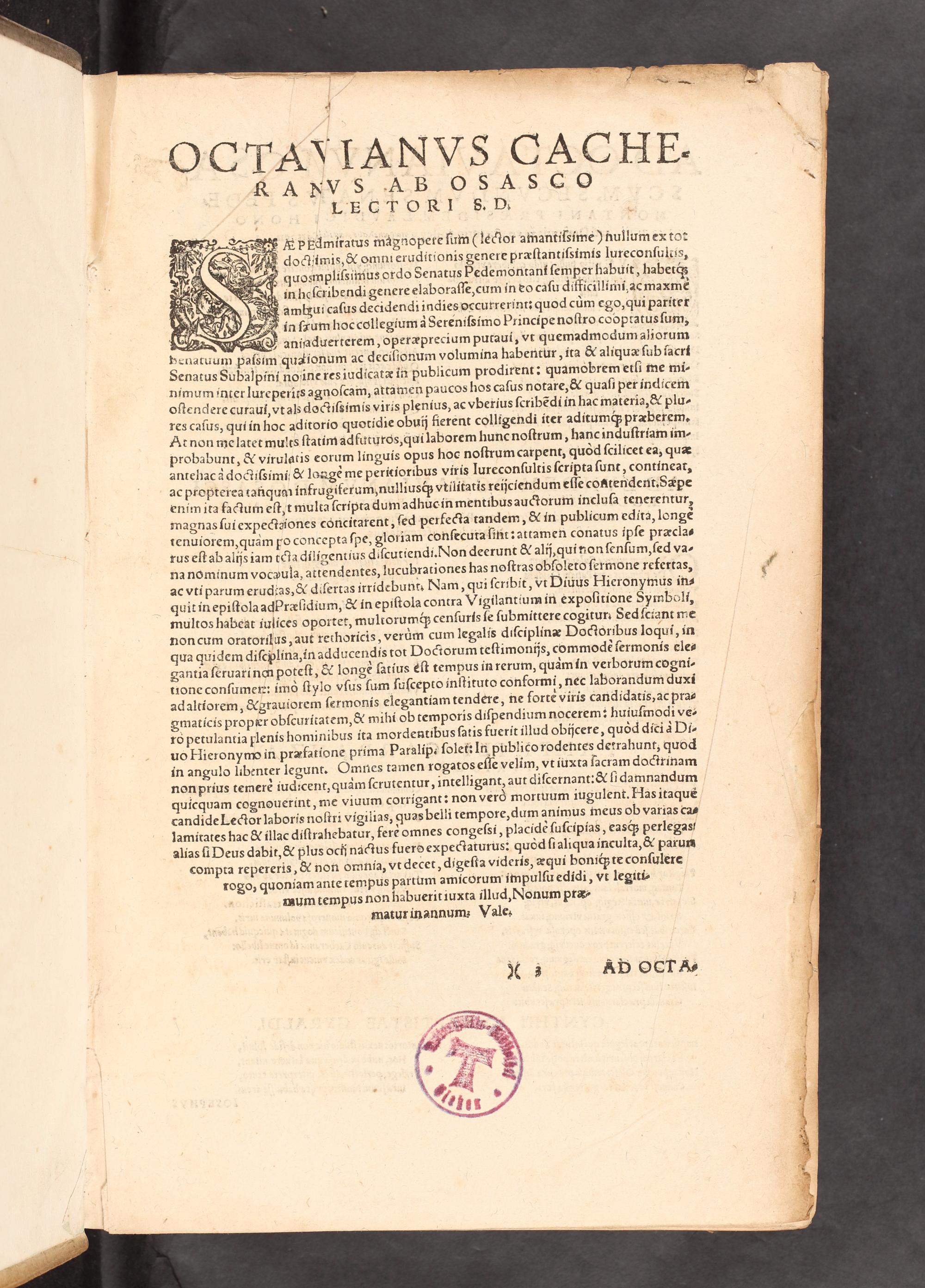 Decisiones Sacri Senatvs Pedemontani / Octaviano Cacherano, Domino Osasci, Comite Rochae Aratij, in eodem Senatu Secundo Praeside, ... Auctore.