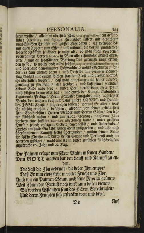 Eine Wohl-vollbrachte Ritterschafft Und Wallfahrt zur ewigen Wohlfahrt, Dardurch man des Himmlischen Kleinods wird theilhafft : In einer sonderbahren Leichen-Rede, Aus 2. Tim. IV,7. 8. Nach dem seeligen Ableiben Des ... Herrn Johann Heinrich Palmen ... Hof-Jubiliers, und Niederlags-Verwandten zu Wien ... Als Derselbe ... 1710. den 18. Aprilis allda seelig gestorben ... / Vorgestellt und auf Begehren ausgefertiget Von M. Ludwig Carl Ditzinger, Ministerii Seniore