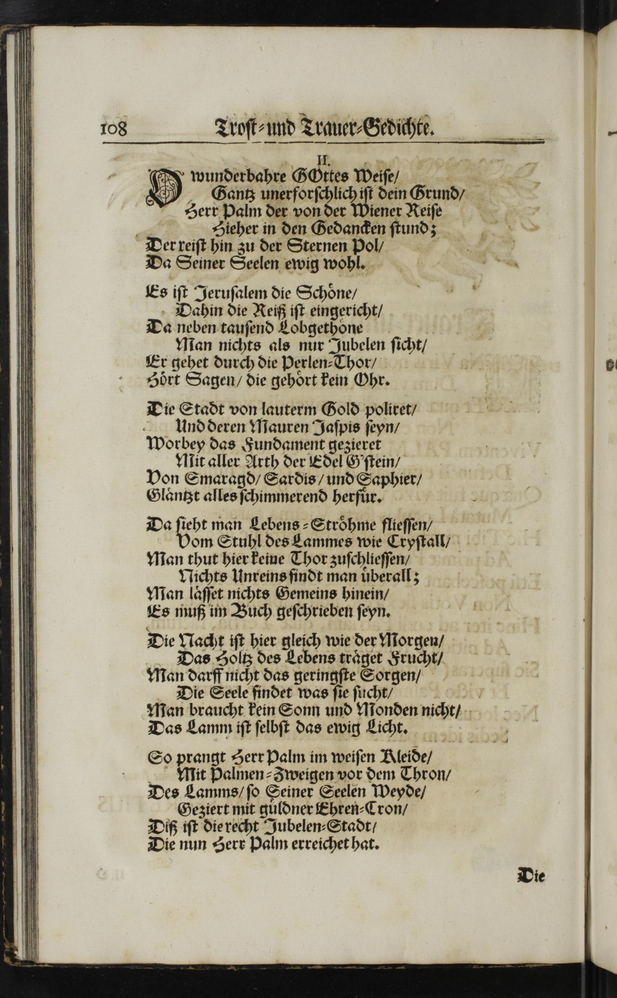 Eine Wohl-vollbrachte Ritterschafft Und Wallfahrt zur ewigen Wohlfahrt, Dardurch man des Himmlischen Kleinods wird theilhafft : In einer sonderbahren Leichen-Rede, Aus 2. Tim. IV,7. 8. Nach dem seeligen Ableiben Des ... Herrn Johann Heinrich Palmen ... Hof-Jubiliers, und Niederlags-Verwandten zu Wien ... Als Derselbe ... 1710. den 18. Aprilis allda seelig gestorben ... / Vorgestellt und auf Begehren ausgefertiget Von M. Ludwig Carl Ditzinger, Ministerii Seniore