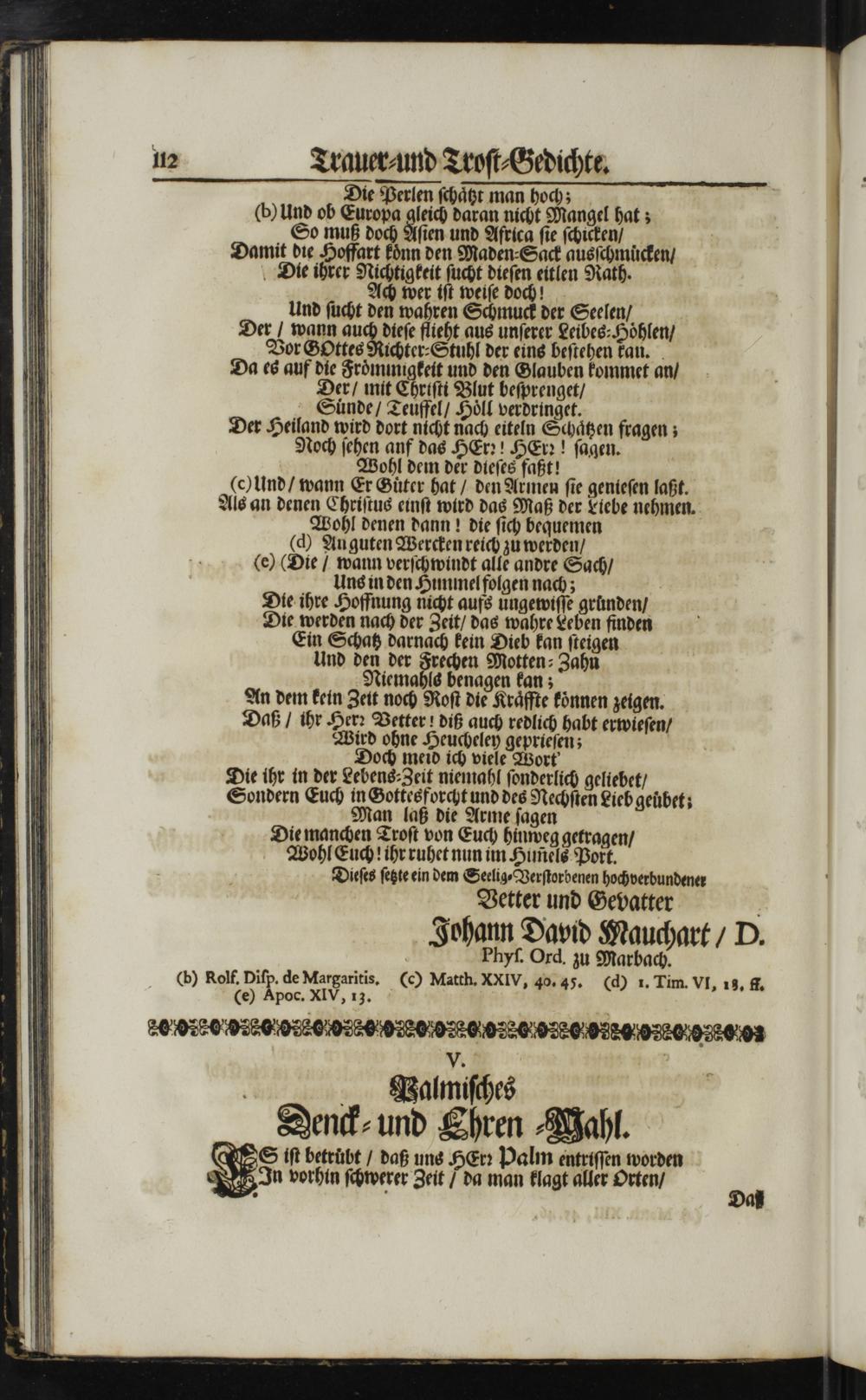 Eine Wohl-vollbrachte Ritterschafft Und Wallfahrt zur ewigen Wohlfahrt, Dardurch man des Himmlischen Kleinods wird theilhafft : In einer sonderbahren Leichen-Rede, Aus 2. Tim. IV,7. 8. Nach dem seeligen Ableiben Des ... Herrn Johann Heinrich Palmen ... Hof-Jubiliers, und Niederlags-Verwandten zu Wien ... Als Derselbe ... 1710. den 18. Aprilis allda seelig gestorben ... / Vorgestellt und auf Begehren ausgefertiget Von M. Ludwig Carl Ditzinger, Ministerii Seniore