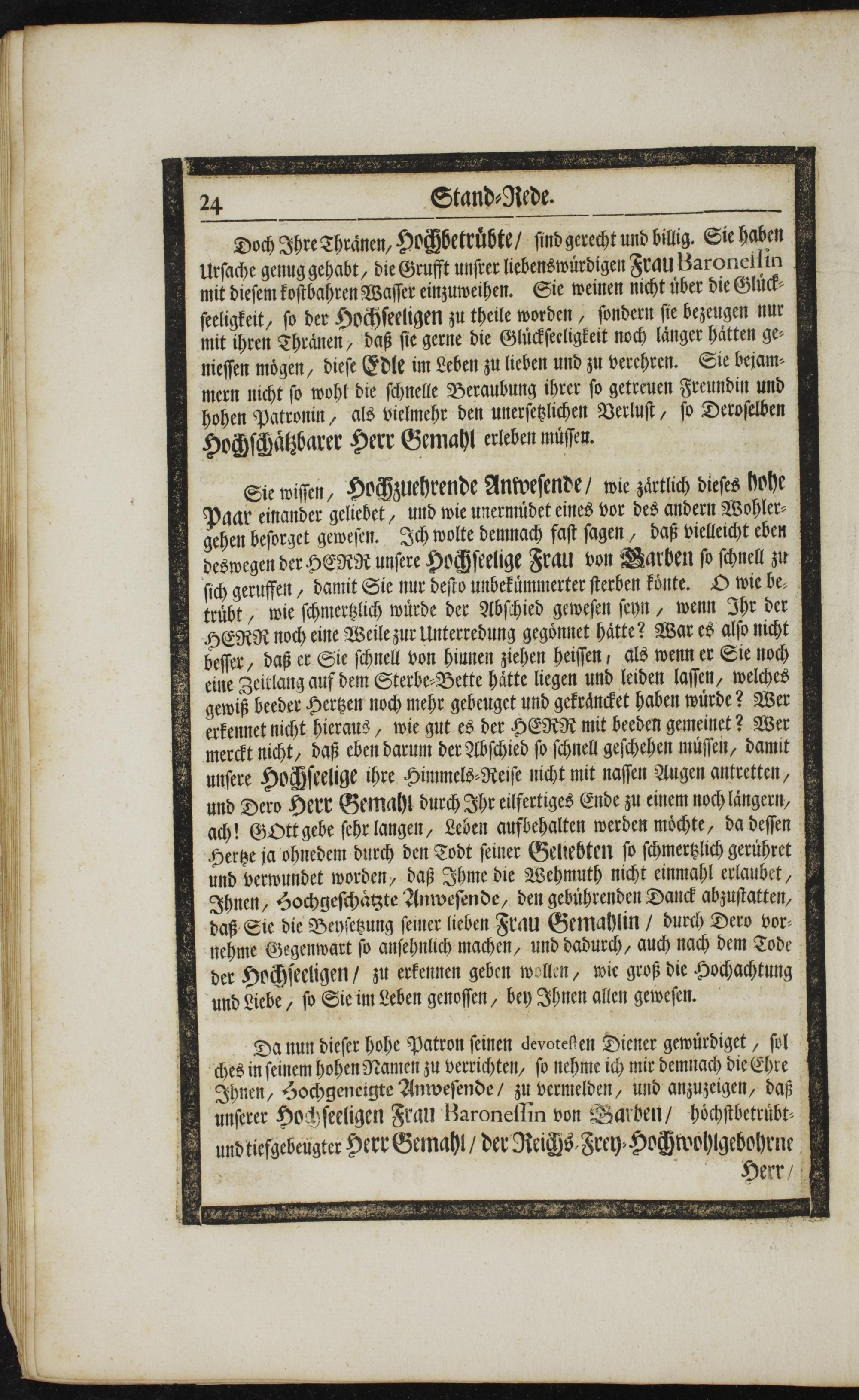 Die Empfehlung glaubiger Seelen gegen Gott : Wurde Bey der solennen Leichen-Begängniß der Weyland Frey-Reichs-Hochwohlgebohrnen Frauen, Frauen Anna Sibylla von Garben, Des Heil. Röm. Reichs-Freyin, auch Edler Frauen von Gibelli, gebohrner Seyfridin, hochseeligen und gesegneten Angedenckens, alls dieselbe im Jahr Christi 1740, Dienstags den 12. Jenner in dem 61ten Jahr ... entrissen ... Einer Hoch-Adelichen, Hoch- und Wohl-Ehrwürdigen und Hochansehnlichen Trauer-Versammlung von dem Altar gehaltenen Trauer-Sermon vorgestellet / von Samuel Widemann, Pfarrer zu St. Ulrich Augsp. Conf.