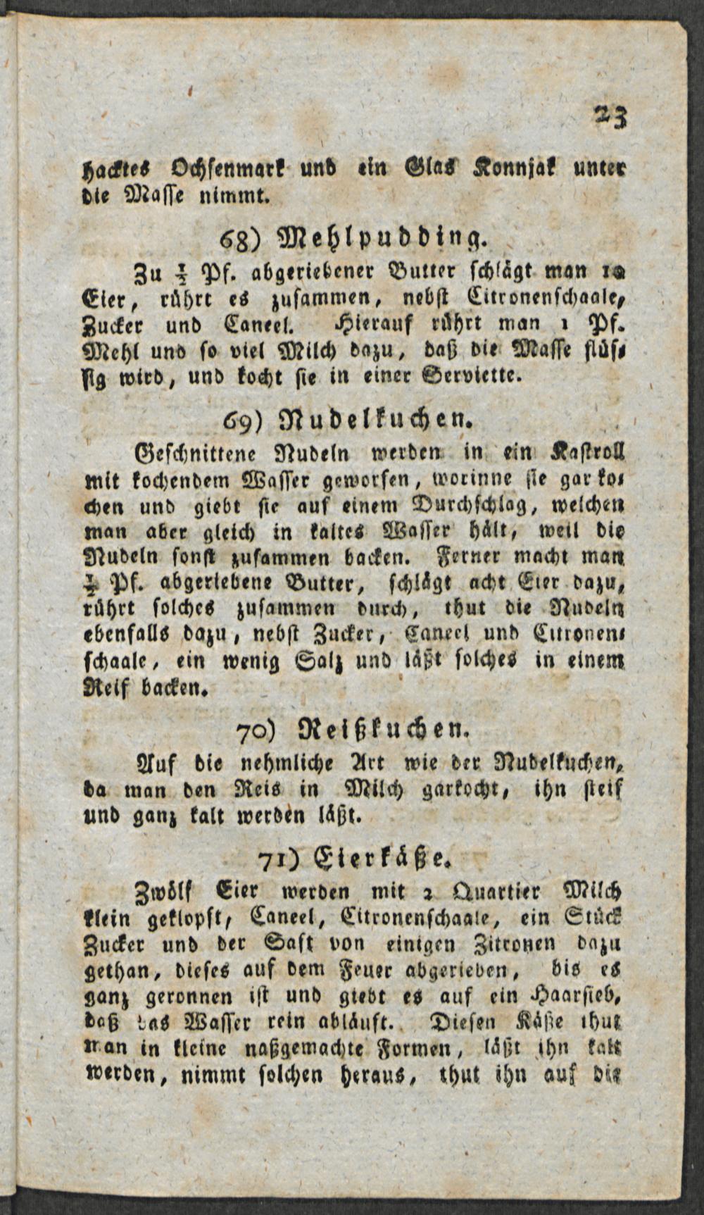 Milch, Eier und Mehlspeisen