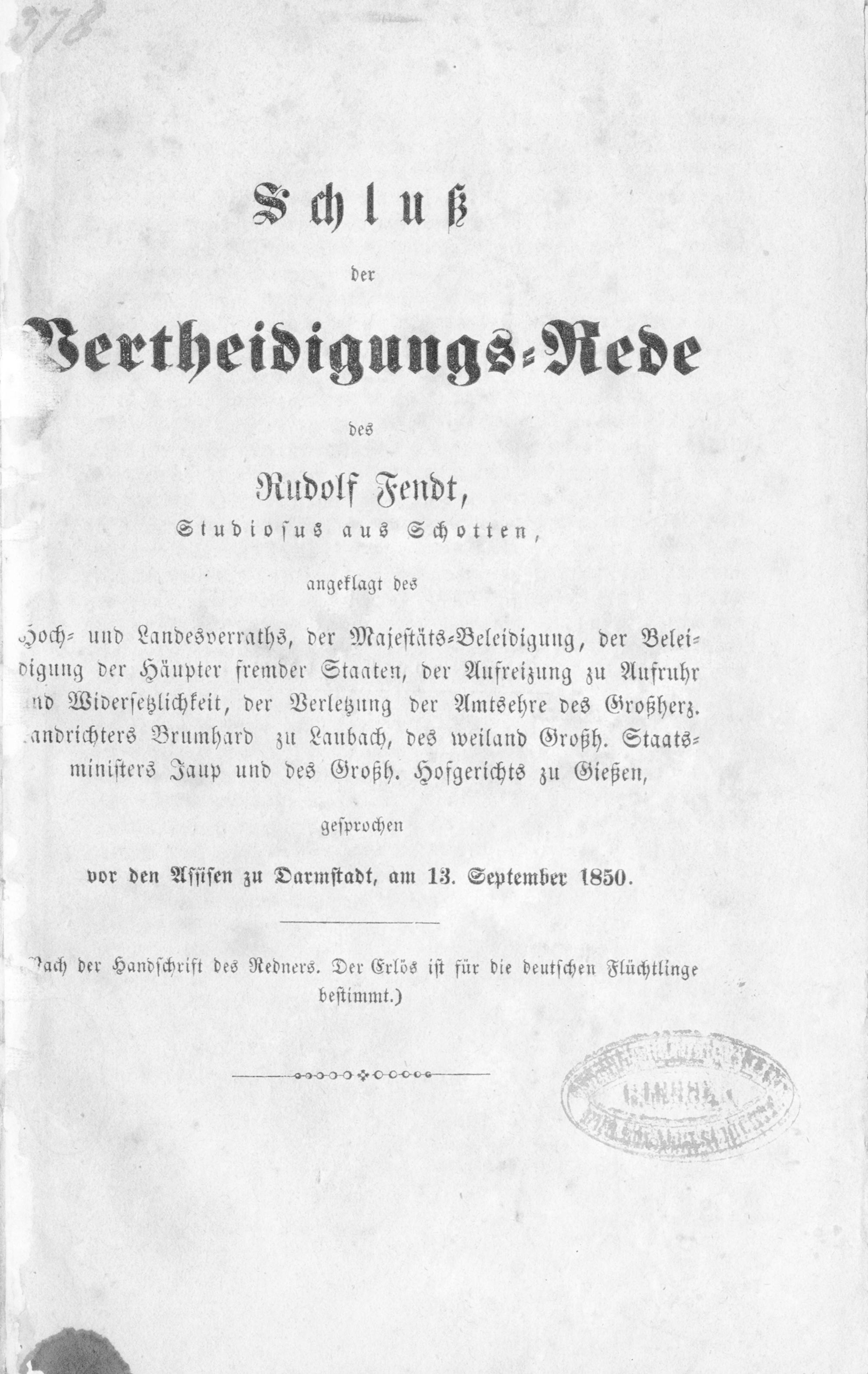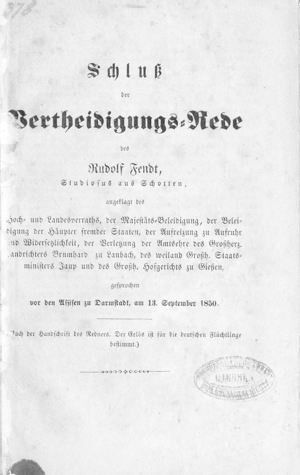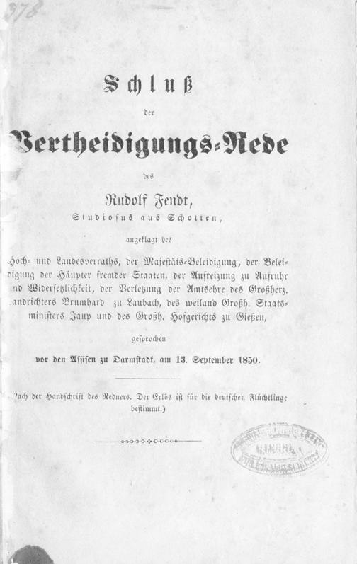 Von 1846 bis 1853 : Erinnerungen aus Verlauf und Folgen einer akademischen und politischen Revolution / von einem weiland Gießener Studenten und badischen Freischärler [Rudolph Fendt]