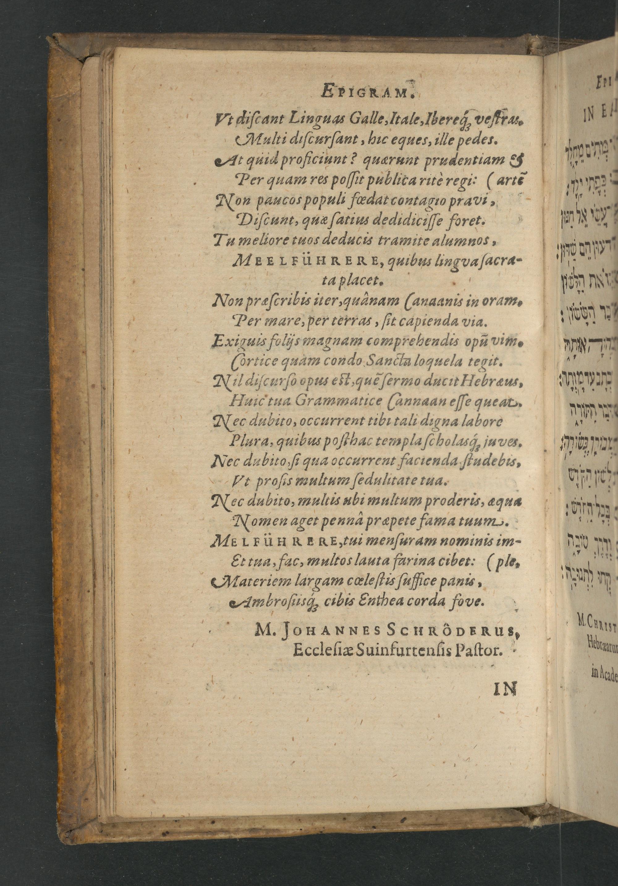 Grammaticæ Hebrææ Compendiosa Institutio. : Certis canonibus comprehensa, & praxi exemplorum fideliter illustrata / Autore M. Johanne Meelführero, Collegiatæ in Onoltzb. Ecclisiaste