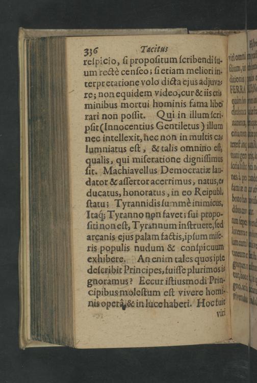 Caroli Moscheni,Anconitani, V.CL. (ut Opusculi fert inscriptio) Tacitus Historiatus , Sive Aphorismi Politici, Taciti Regulis accomodati, ex Idiomate Italico in Latinum transfusi, recentioribusque passim Exemplis Præceptisque illustrati. / Tradente Jacobo Le-Blev , V.I.D. & P.P.