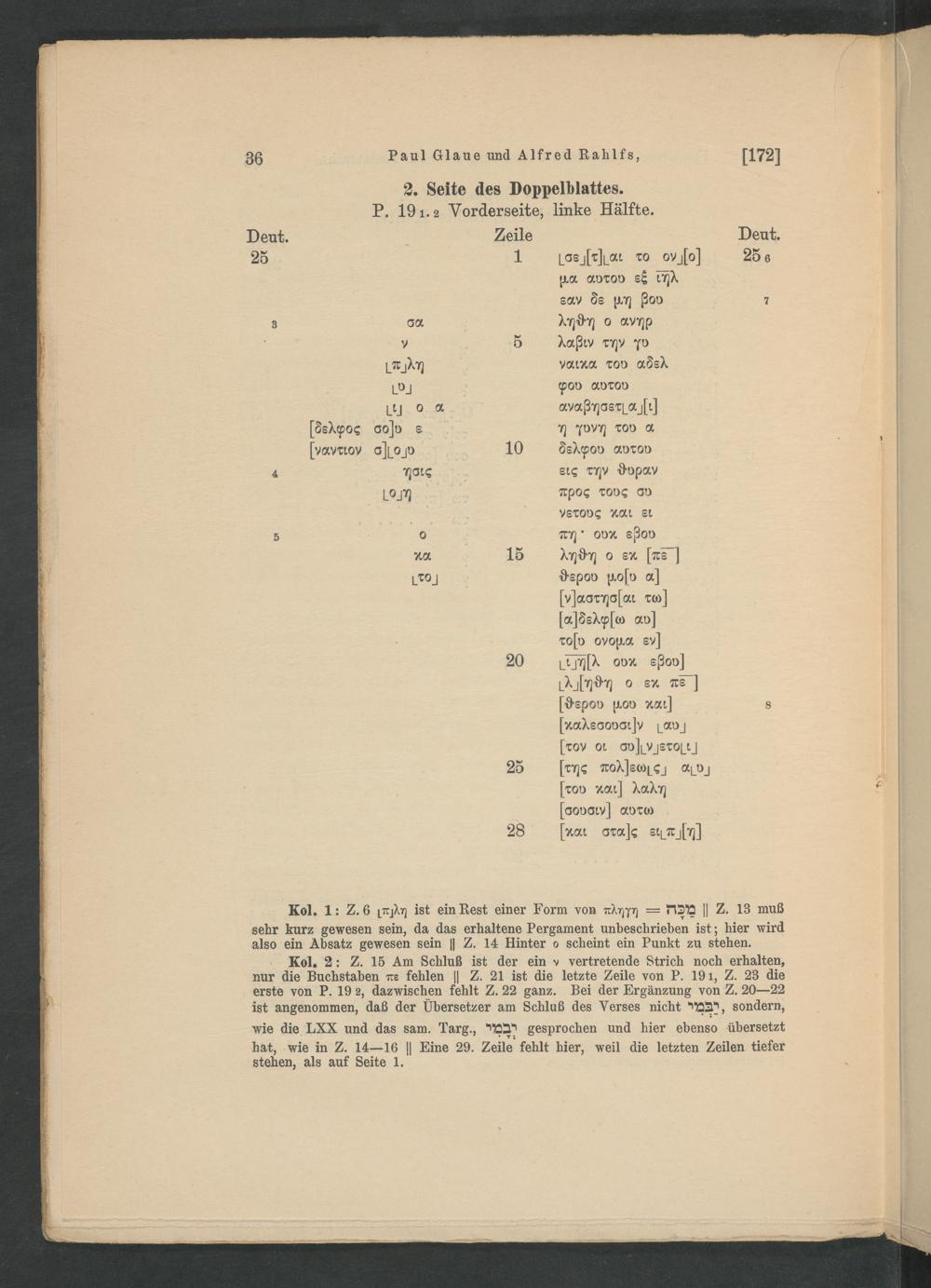 Fragmente einer griechischen Übersetzung des samaritanischen Pentateuchs. / von Paul Glaue und Alfred Rahlfs