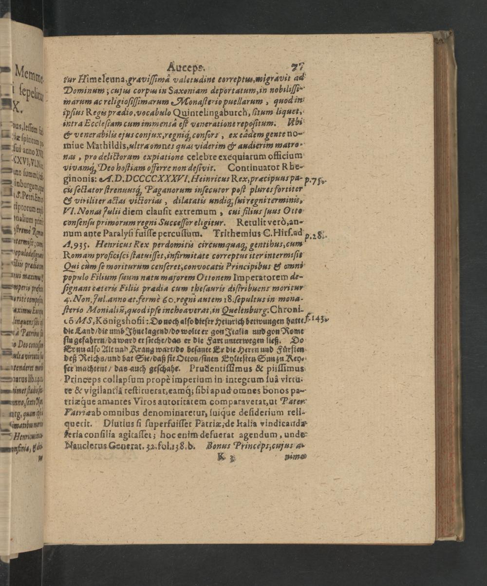 Imperatorum germanicorum familiae saxonicae historia Augustaea Henrici I. Aucupis, Othonis I. Magni, Othonis II., Othonis III. Henrici II Sancti / cum indice rerum et materiarum neccessario edente Johanne Cunrado Dieterichio