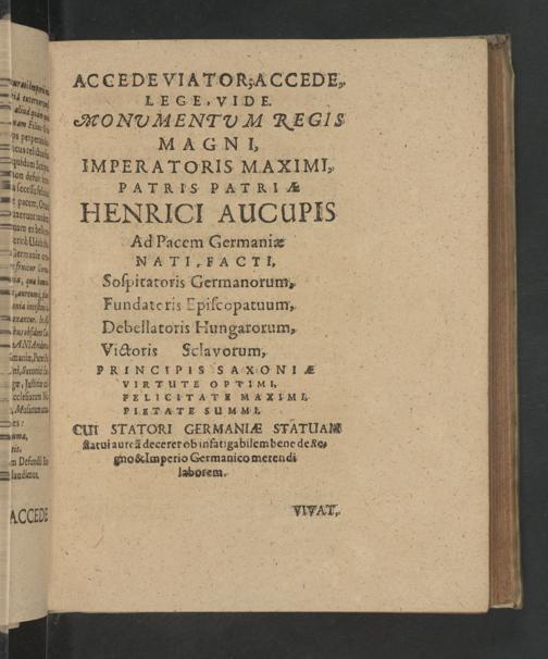 Imperatorum germanicorum familiae saxonicae historia Augustaea Henrici I. Aucupis, Othonis I. Magni, Othonis II., Othonis III. Henrici II Sancti / cum indice rerum et materiarum neccessario edente Johanne Cunrado Dieterichio