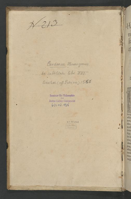 Hieronymi Cardani Mediolanensis Medici De Svbtilitate Libri XXI / Ab authore plus quàm mille locis illustrati, nonnullis etiam cum additionibus. Addita insuper Apologia aduersus calumniatorem, qua uis horum librorum aperitur