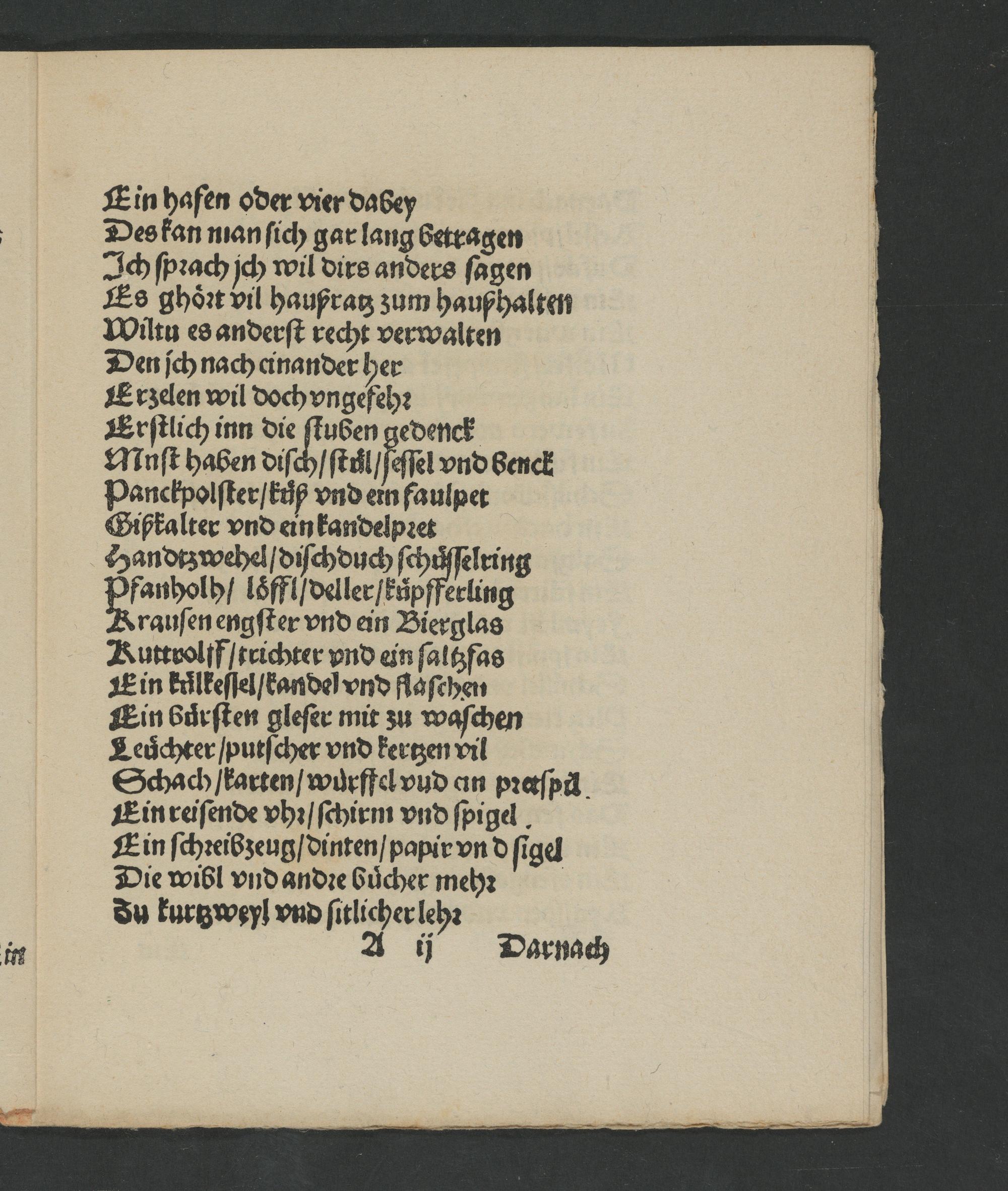Der gantz Haußrat/ bey dreyhundert stücken/ so vngefehrlich inn ein jedes Hauß gehöret. Mehr ein nützlicher raht/ den jungen gesellen die so sich verheyraten wöllen. / Hans Sachs.