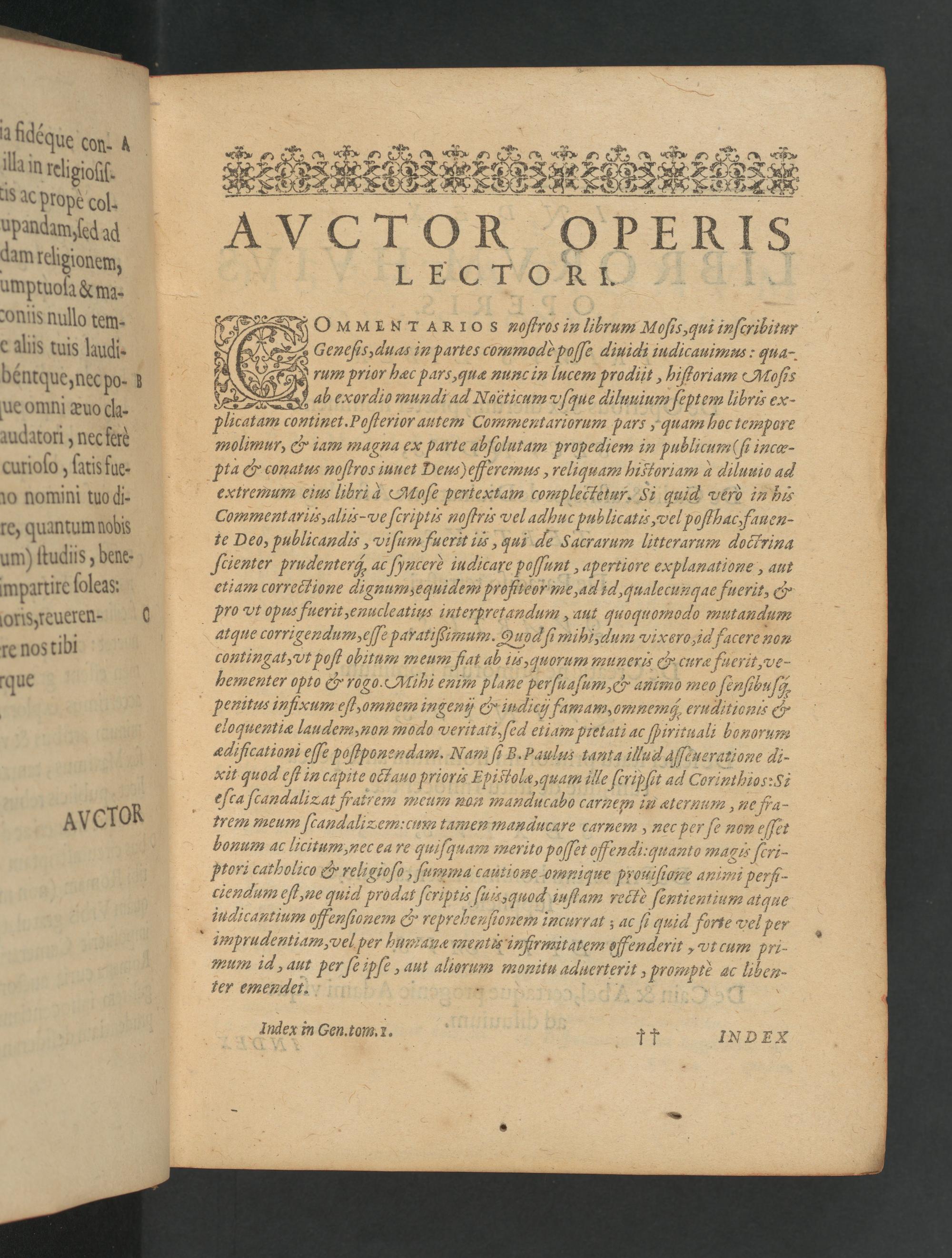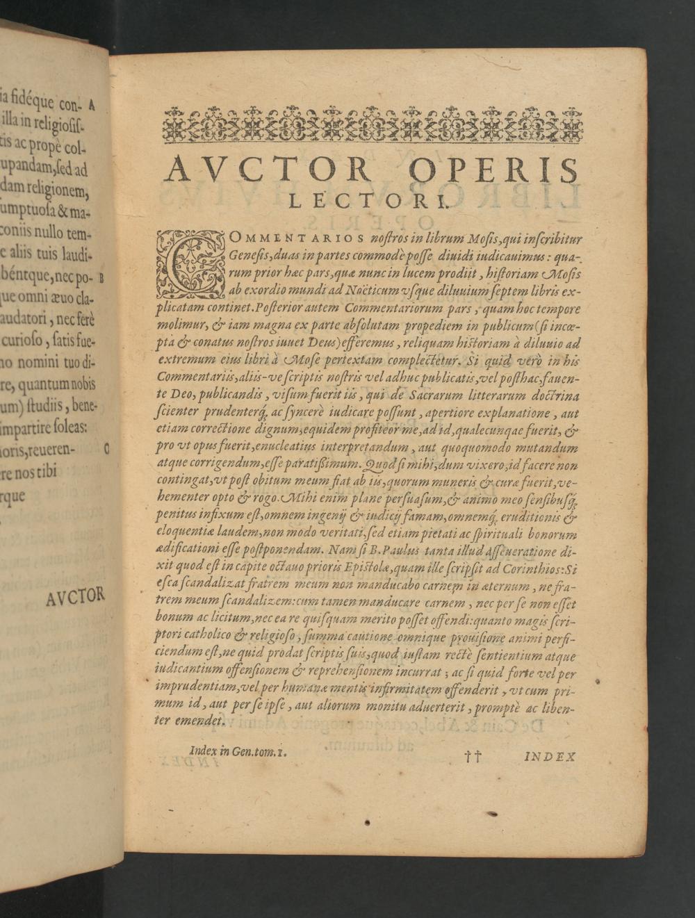 Prior Tomus (1594) Adiecti sunt quattuor Indices, vnus quæstionum, alter|| eorum quæ pertinent ad doctrinam moralem, & vsum|| concionantium, tertius Iocorum sacræ Scri-||pturæ,quartus generalis &|| alphabeticus.