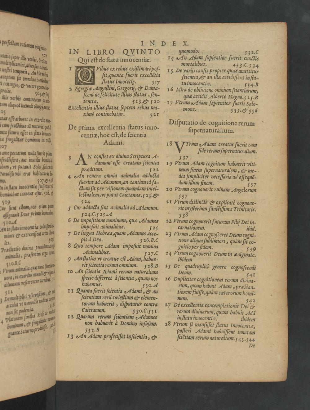 Prior Tomus (1594) Adiecti sunt quattuor Indices, vnus quæstionum, alter|| eorum quæ pertinent ad doctrinam moralem, & vsum|| concionantium, tertius Iocorum sacræ Scri-||pturæ,quartus generalis &|| alphabeticus.