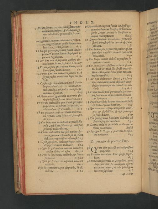 Prior Tomus (1594) Adiecti sunt quattuor Indices, vnus quæstionum, alter|| eorum quæ pertinent ad doctrinam moralem, & vsum|| concionantium, tertius Iocorum sacræ Scri-||pturæ,quartus generalis &|| alphabeticus.