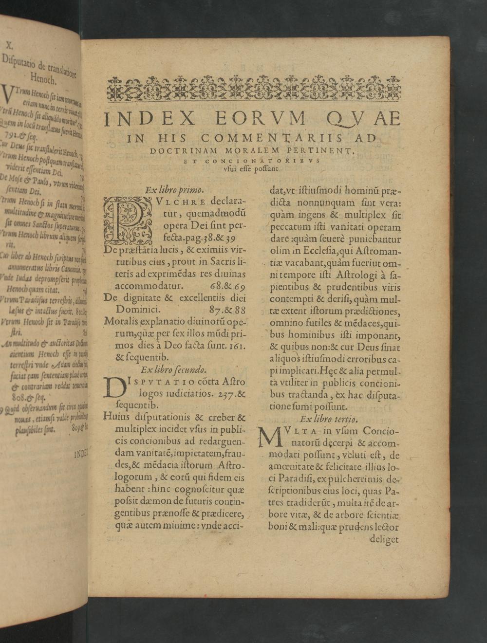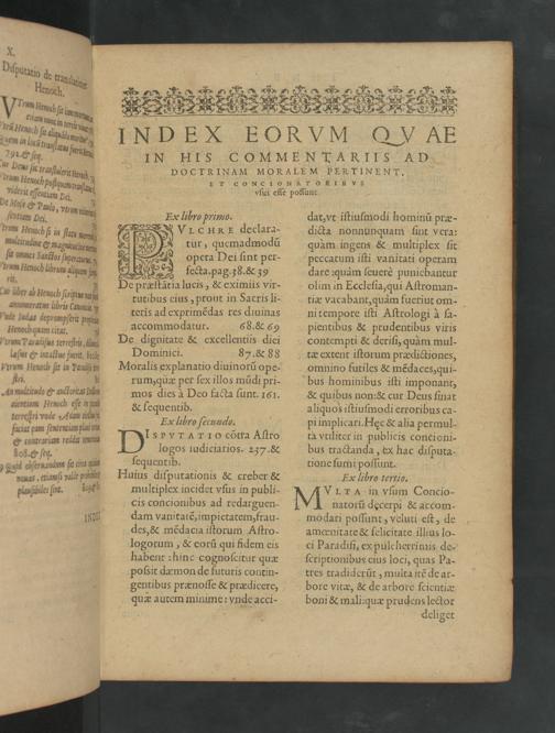 Prior Tomus (1594) Adiecti sunt quattuor Indices, vnus quæstionum, alter|| eorum quæ pertinent ad doctrinam moralem, & vsum|| concionantium, tertius Iocorum sacræ Scri-||pturæ,quartus generalis &|| alphabeticus.
