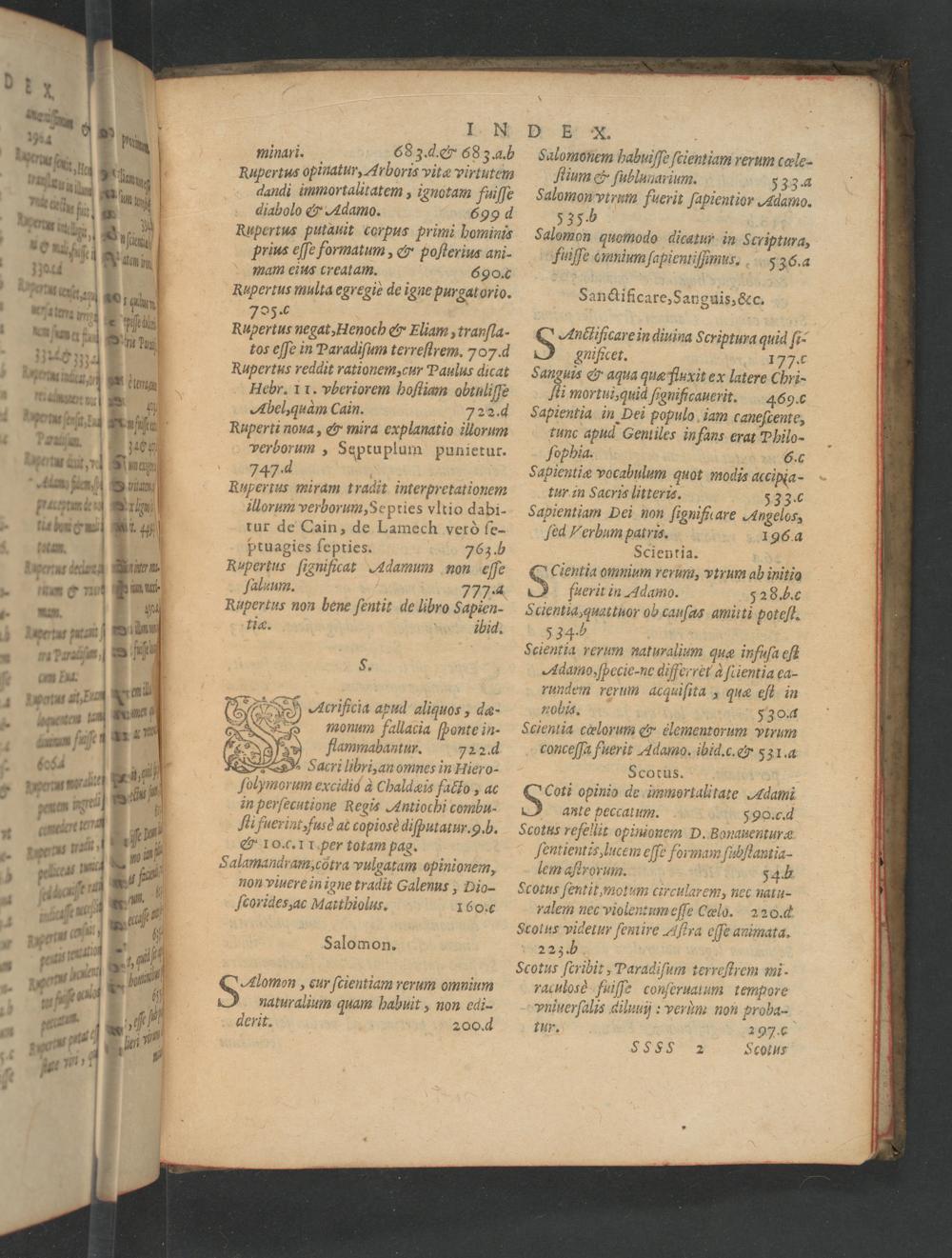 Prior Tomus (1594) Adiecti sunt quattuor Indices, vnus quæstionum, alter|| eorum quæ pertinent ad doctrinam moralem, & vsum|| concionantium, tertius Iocorum sacræ Scri-||pturæ,quartus generalis &|| alphabeticus.
