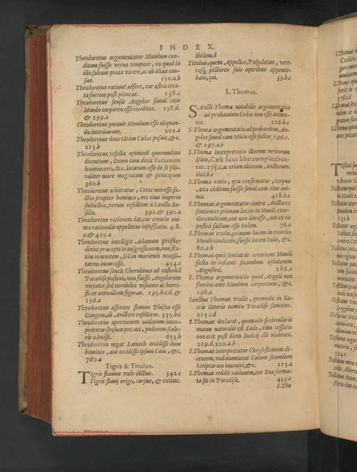 Prior Tomus (1594) Adiecti sunt quattuor Indices, vnus quæstionum, alter|| eorum quæ pertinent ad doctrinam moralem, & vsum|| concionantium, tertius Iocorum sacræ Scri-||pturæ,quartus generalis &|| alphabeticus.