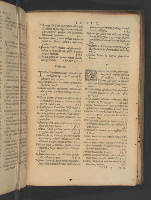Prior Tomus (1594) Adiecti sunt quattuor Indices, vnus quæstionum, alter|| eorum quæ pertinent ad doctrinam moralem, & vsum|| concionantium, tertius Iocorum sacræ Scri-||pturæ,quartus generalis &|| alphabeticus.