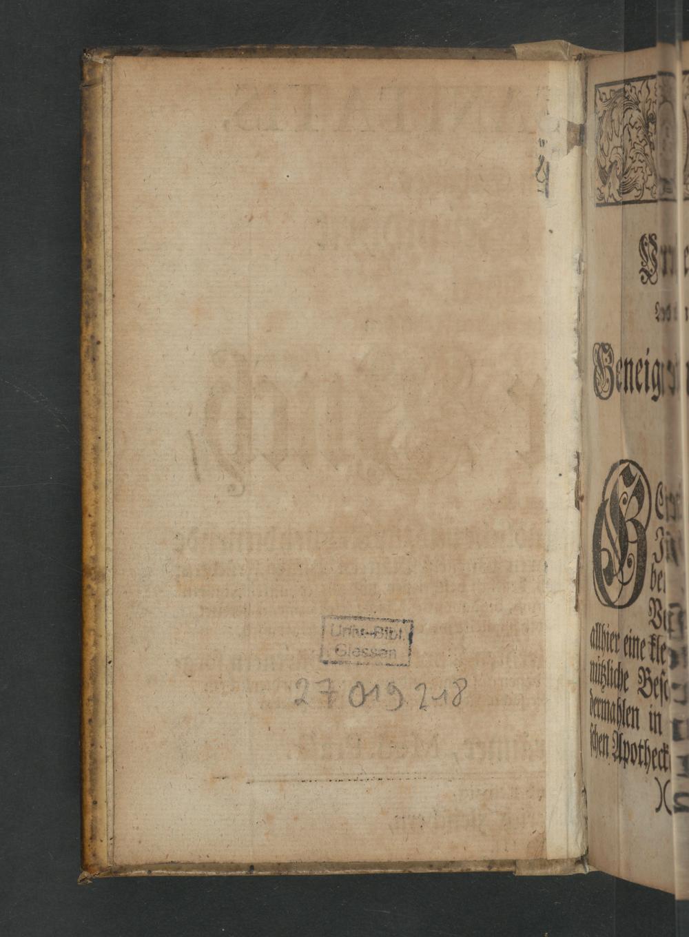 Thesaurus Sanitatis, oder Neu-eröffneter Schatz Menschlicher Gesundheit