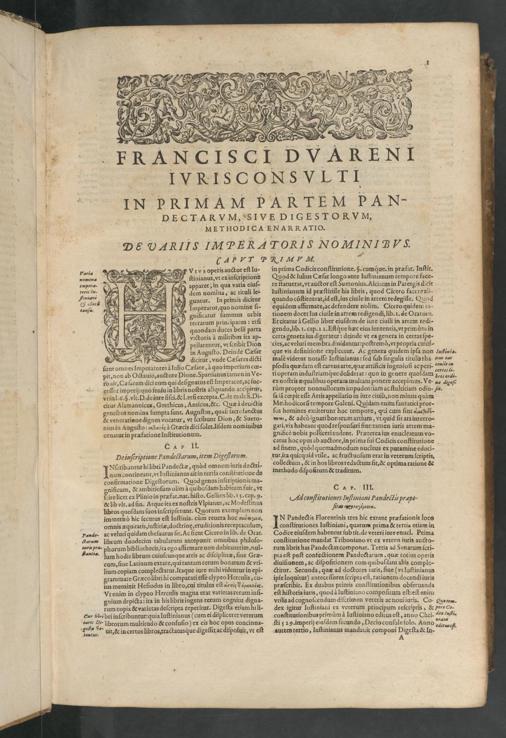D. Francisci Dvareni I. C.Celeberrimi, Omnia Qvae Qvidem Hactenvs Edita Fvervnt Opera : Non Tantvm Plvrimis In Digesta seu Pandectas, & Codicem Commentariis, ac methodicis expositionibus, ...; Hoc vnico tandem comprehensa volumine; Cum Indicibus titulorum, nec non rerum & verborum, locupletissimis