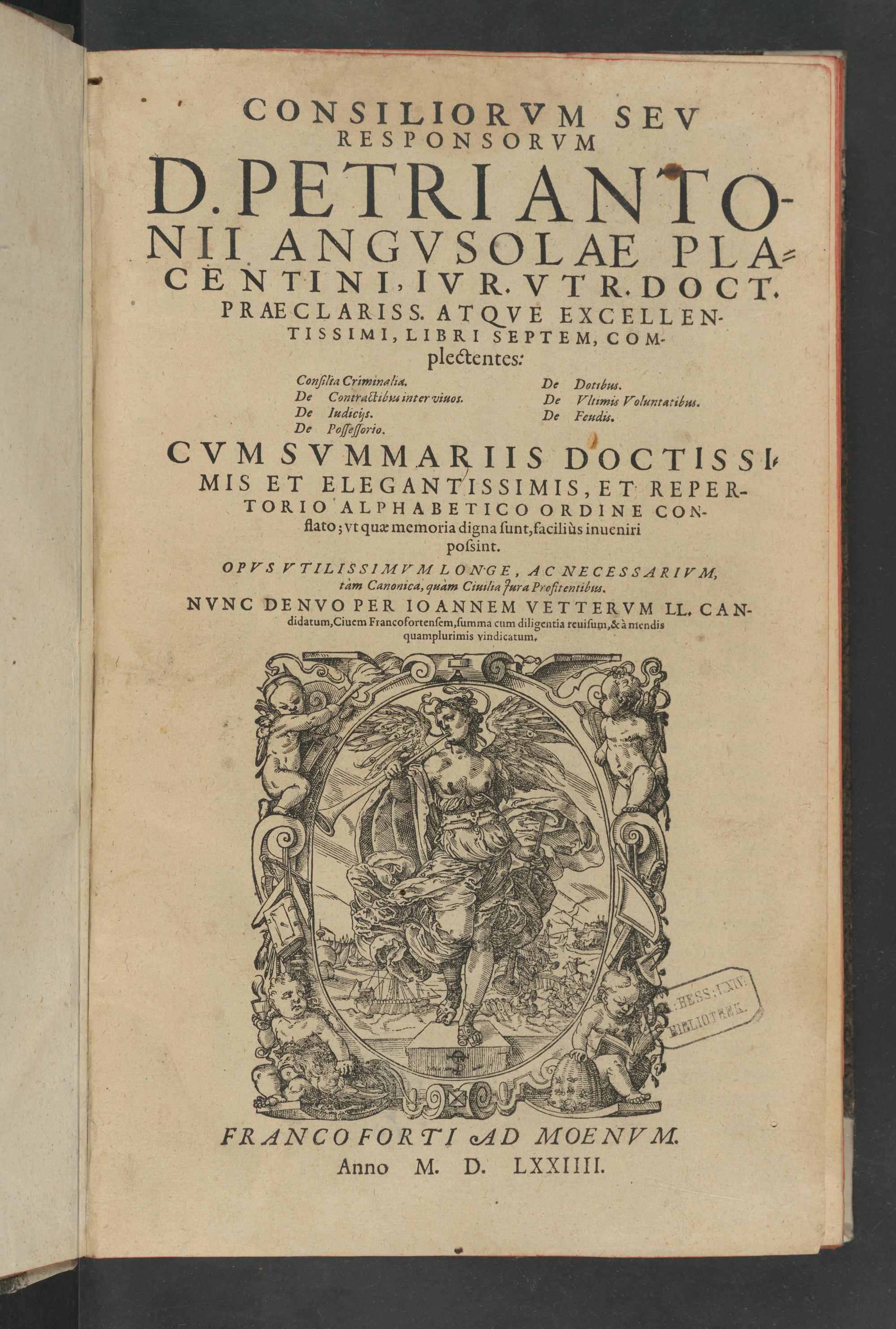 Consiliorvm Sev Responsorvm D. Petri Antonii Angvsolae Placentini ... Libri Septem ... : Cvm Svmmariis ... Et Repertorio Alphabetico Ordine Conflato ...