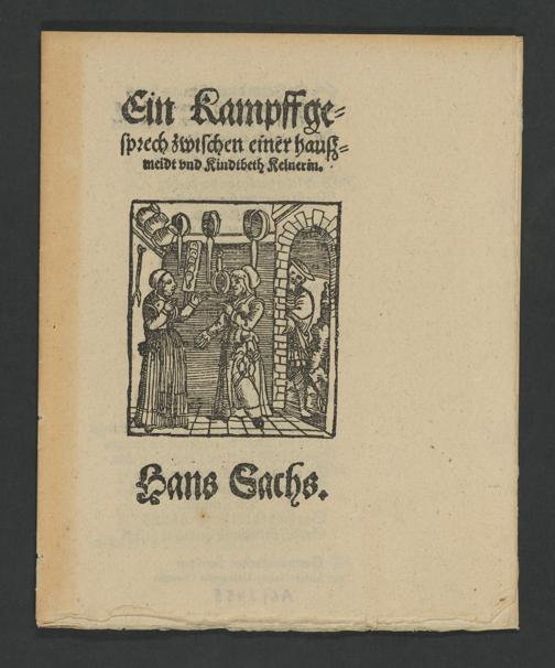 Ein Kampffgesprech zwischen einer hauszmeidt vnd Kindbeth Kelnerin. / Hans Sachs.