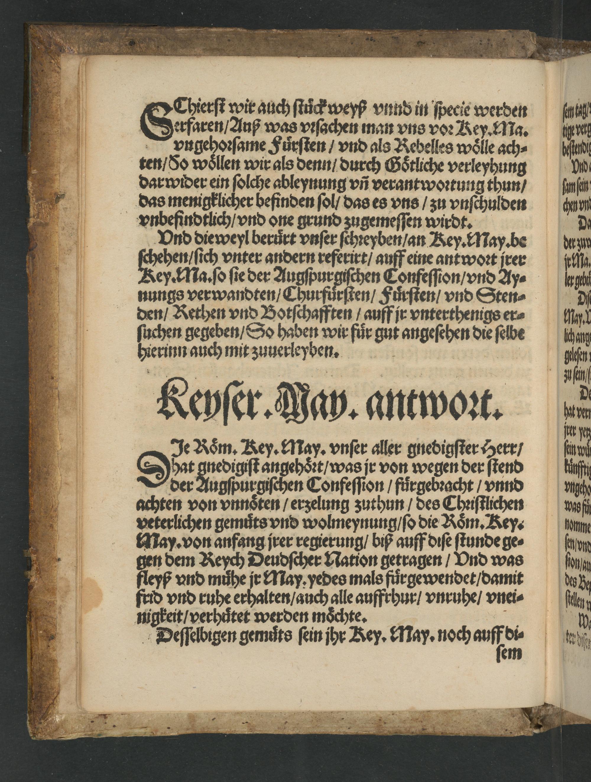 Der Durchleuchtigst vnd Durchleuchtigen Hochgebornen Fürsten vnd Herrn, Herrn, Johans Friderichen Hertzogen zu Sachssen ... Vnd Herrn Philipsen Landgrauen zu Hessen ... Warhafftiger bericht vnd Summari außführung, Warumb jnen zu vnschulden auffgelegt wirdet, Das sie Römischer Key. May. vngehorsame Fürsten sein solten, Das sie auch keins strefflichen vngehorsams geziegen mögen werden, anders, dan[n] das sie von vnserm waren heiligen Christlichen Glauben, vnnd von Gottes wort, vnd der reinen lehr des heiligen Euangelij, nit können abstehen, Noch die selb dem Römischen Antichrist dem Bapst vnd seinem partheischen Trientischen Concilio zurichten vnterwerffen ...