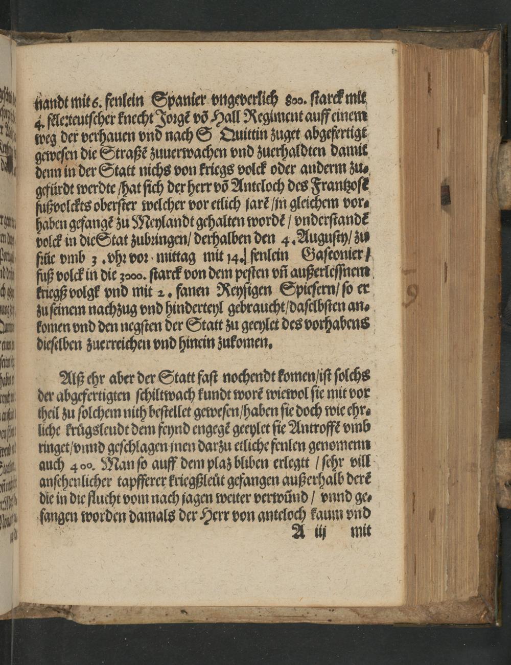 Newe zeytung. Warhafftiger und grundlicher bericht der Schlacht so geschehen ist zwischen dem/ Künig von Hisspanien vnd Engellandt/ eins theyls/ vnnd darnach zwischen dem Künig auß Franckreych des andern theyls/ vor S. Quintin jn Picardia den x. tag A[ue]gusty in diesem M.D.Lvii. Jar gescheheu.