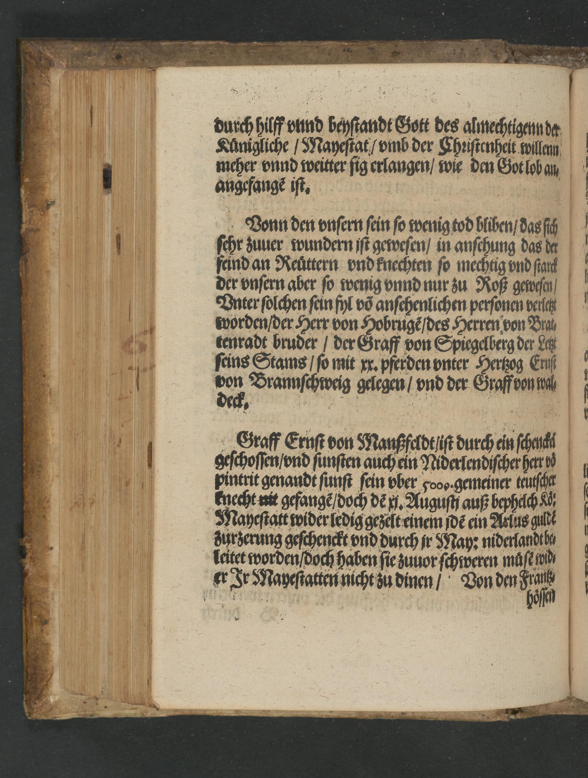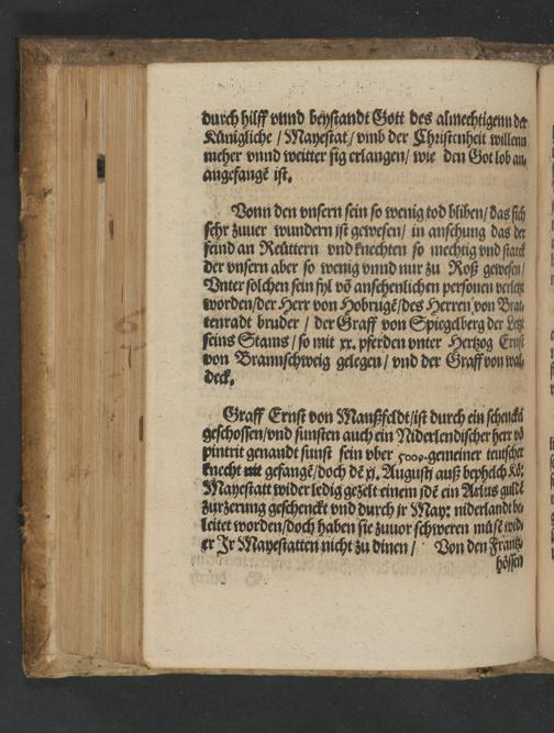 Newe zeytung. Warhafftiger und grundlicher bericht der Schlacht so geschehen ist zwischen dem/ Künig von Hisspanien vnd Engellandt/ eins theyls/ vnnd darnach zwischen dem Künig auß Franckreych des andern theyls/ vor S. Quintin jn Picardia den x. tag A[ue]gusty in diesem M.D.Lvii. Jar gescheheu.
